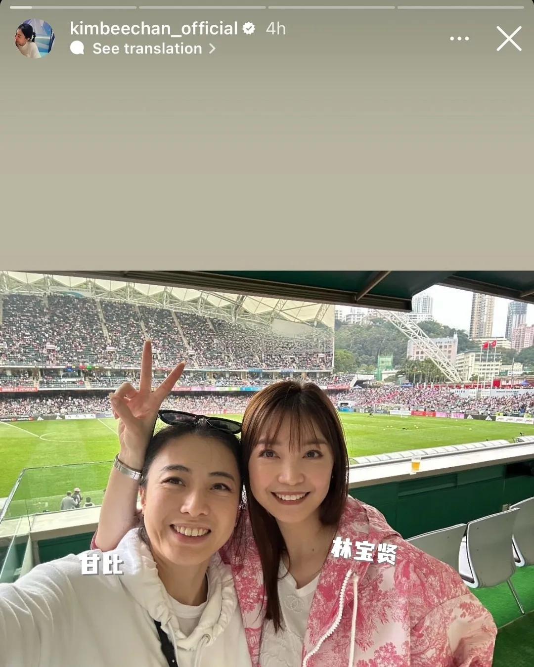 甘比林宝贤现身迈阿密国际香港行的比赛现场,同行的还有何超琼、林心儿、刘秀桦、后面还有林建岳, 甘比和林宝贤还合拍 ​美照,有网友表示两人像一对姐妹花,甘比也看起来越来越年轻了!#最新娱乐动态# #娱乐说真话# #娱乐圈每日热议#