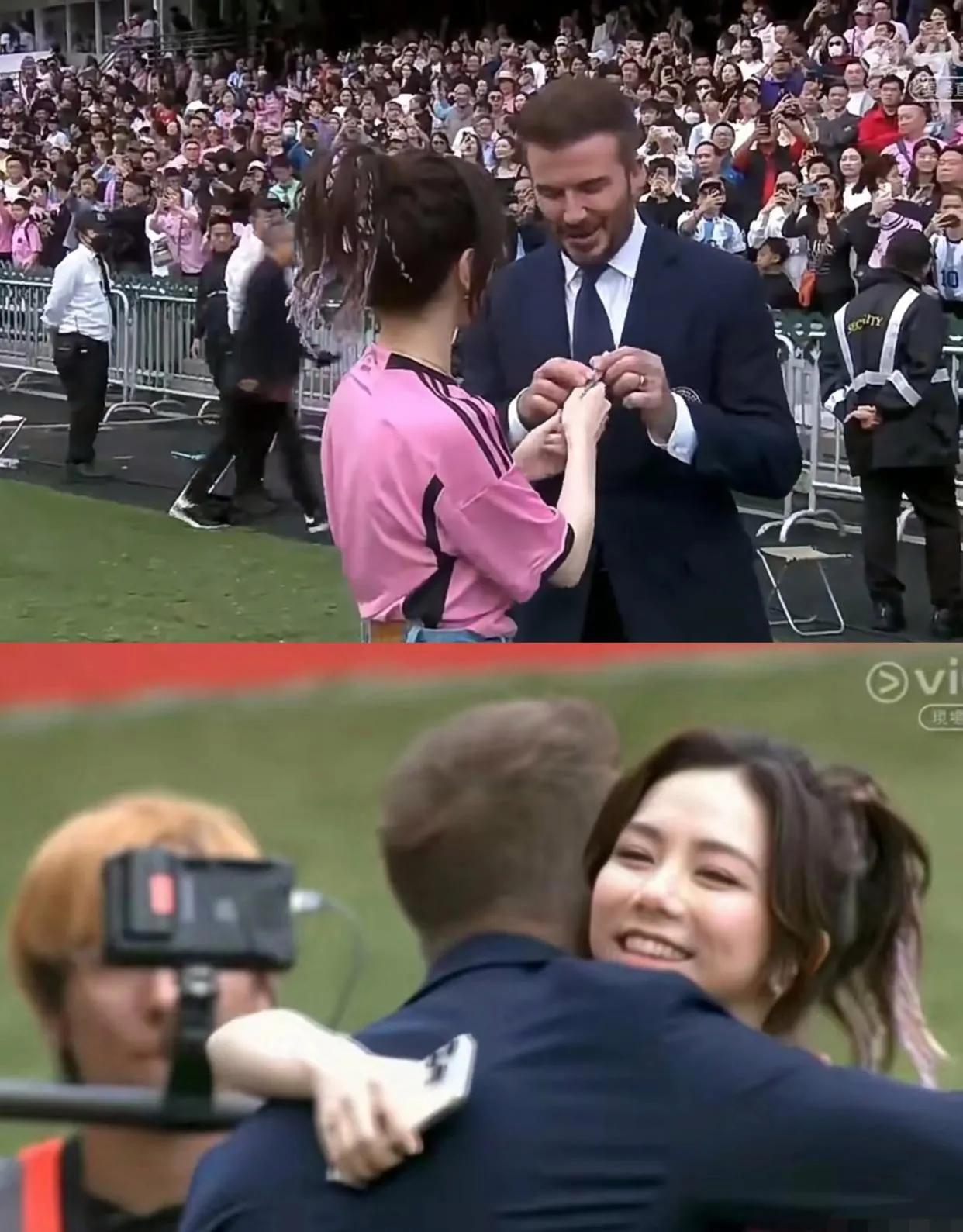 邓紫棋追星成功,看着都羡慕。 和贝克汉姆一起合照,签名儿,拥抱。笑的合不拢嘴了。更令人惊喜的是,小贝不仅大方与邓紫棋合影,更在她的球衣上留下了个性签名。 胡子拉碴的贝克汉姆一身西服,帅气潇洒,魅力非凡,男人味十足,真的老了都这么帅!#贝克哈姆邓紫棋# #万能生活指南#