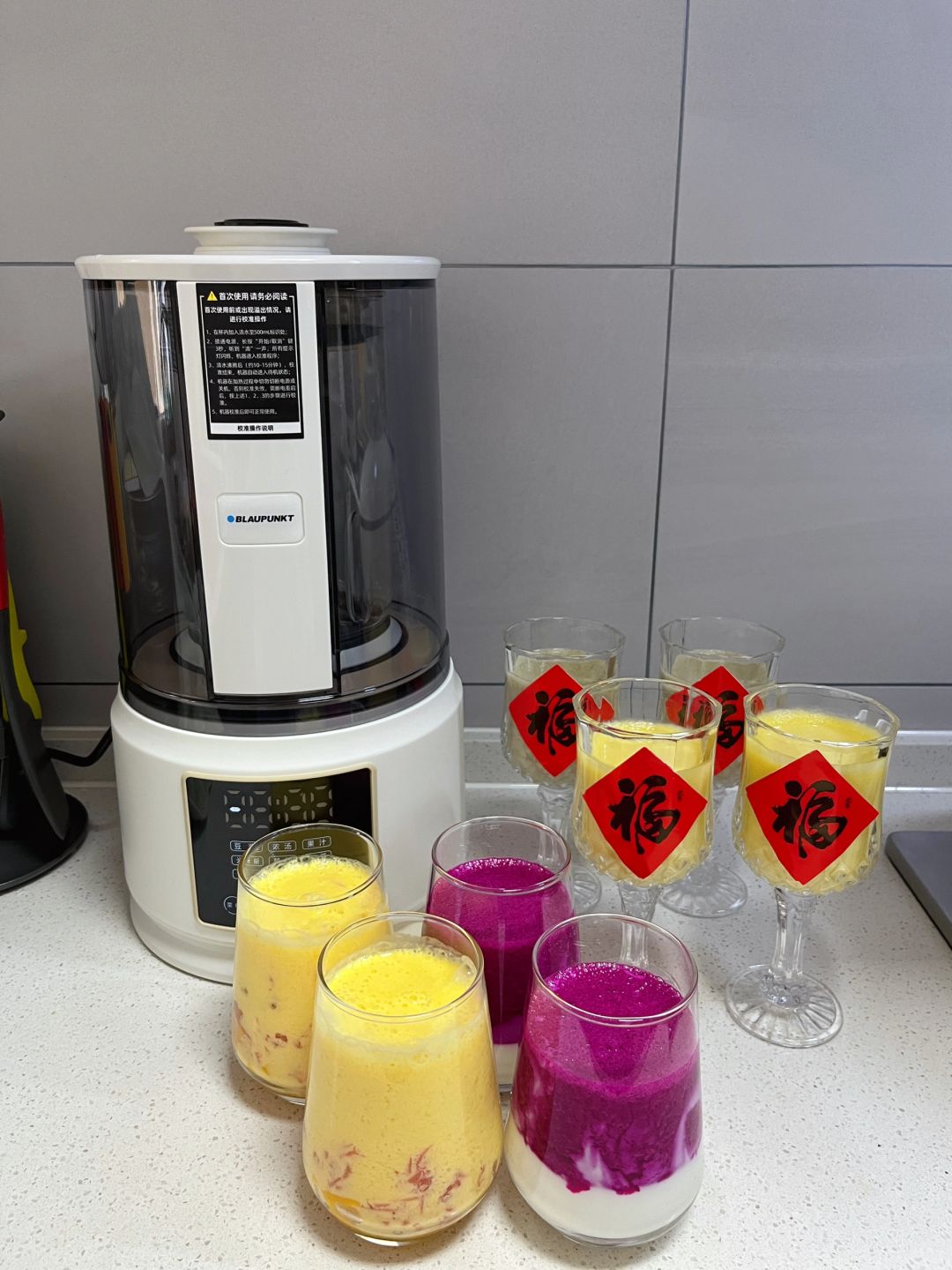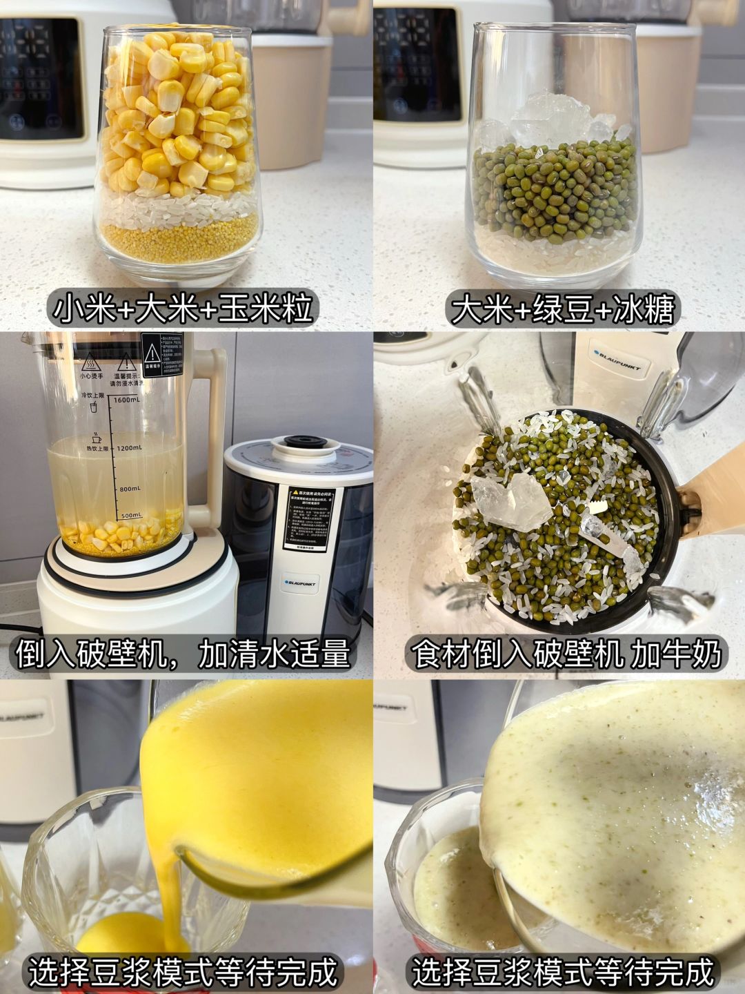 今天diy了四款饮品,2款热饮➕2款冷饮,蓝宝破壁机也是我家使用率较高的小家电啦,一年四季都常用,8叶刀头做出来的饮品是很细腻无渣免过滤的,盖上隔音罩也不会打扰到家人休息,今天做的玉米汁香甜浓郁 细腻爽滑,家人说比饭店的还要好喝~