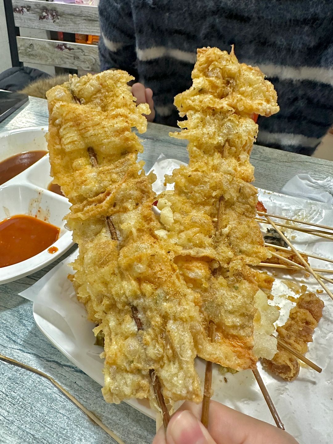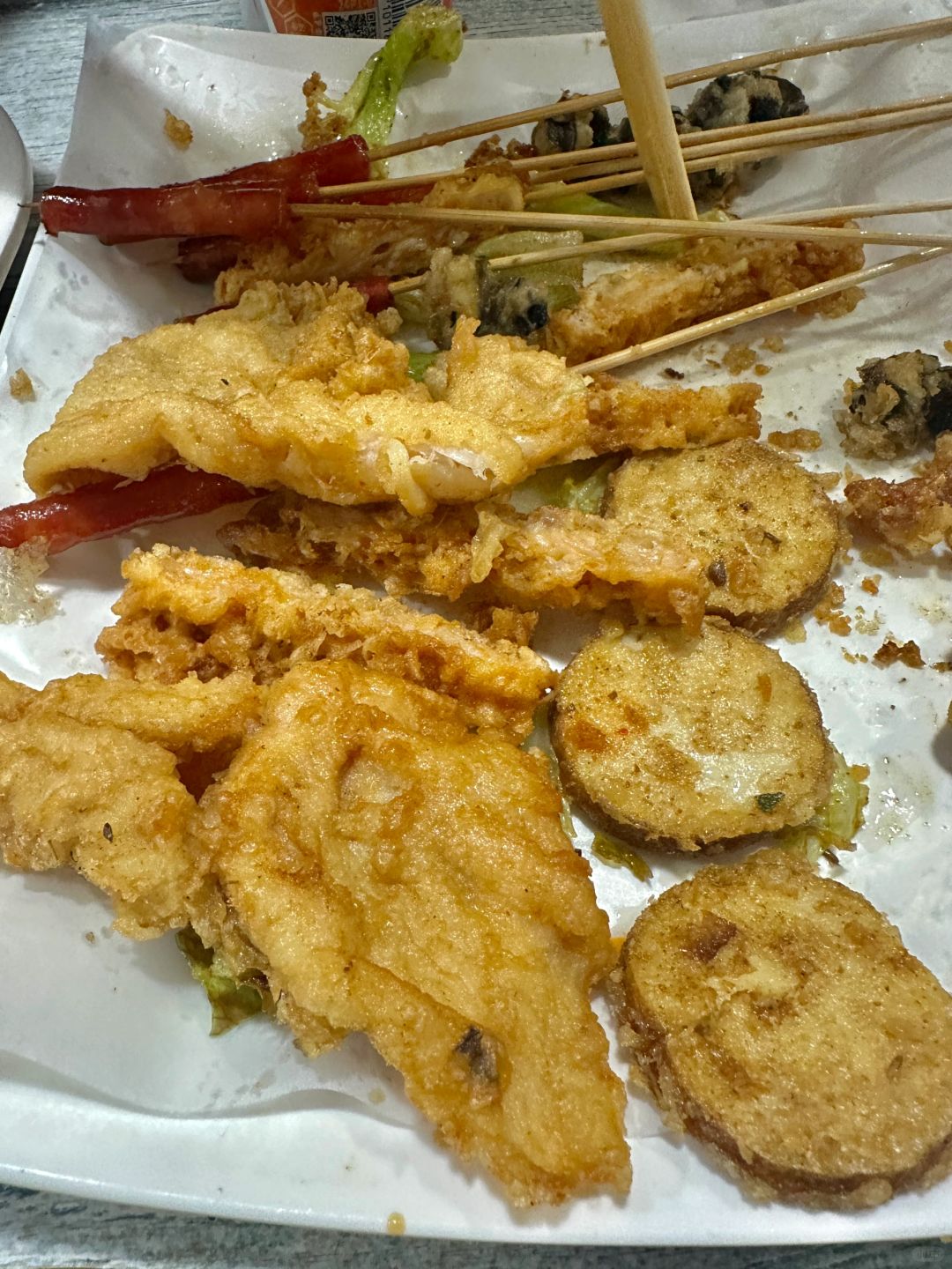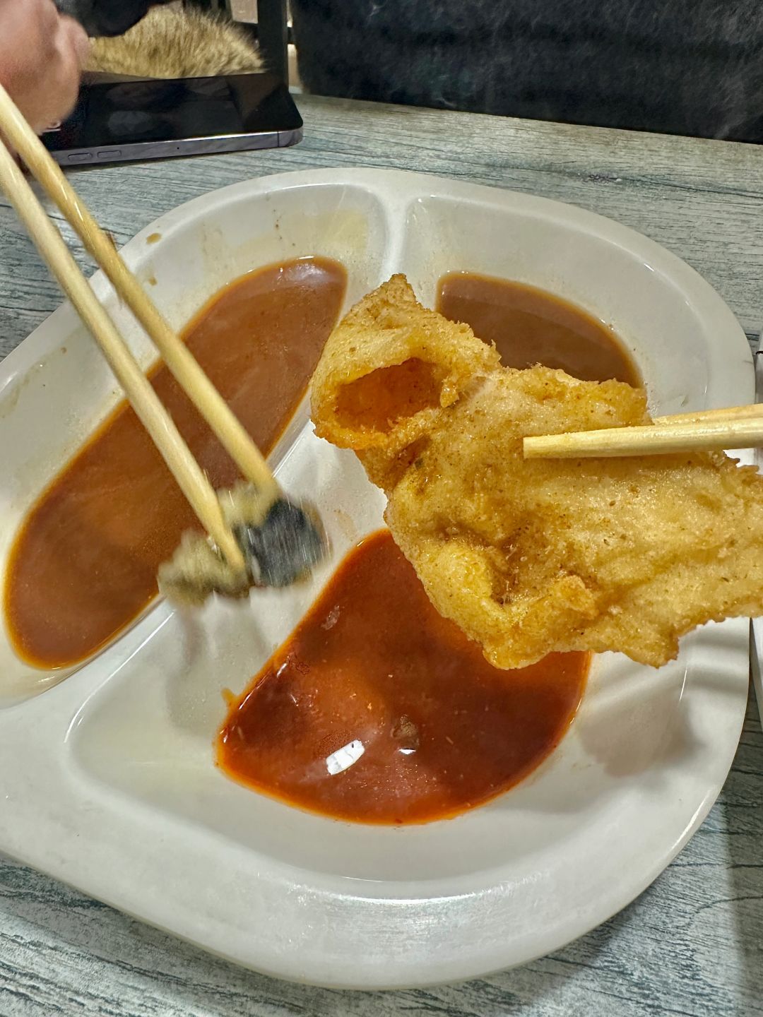 台州巨好吃巨隐蔽的炸年糕! 本地人带我吃到的,在一个小区旁 第一次吃到台州的炸炸(都是裹了一层面粉 第一次吃到这个样子的年糕(真的好好吃啊 年糕十级爱好者,还有炸螺肉、响铃卷… 有酸酱、辣酱、咸酱(自己蘸的好好吃)