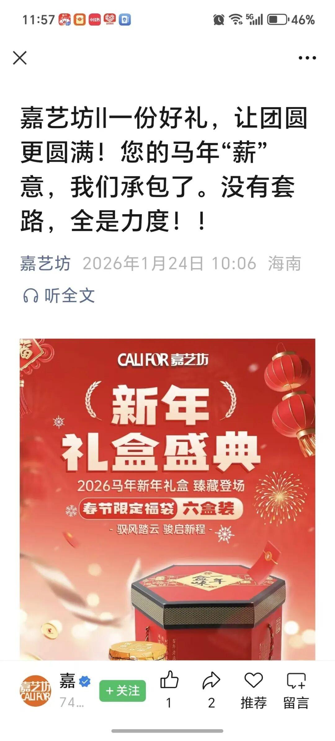 其微信公众号上的最后一篇文章定格在2026年的1月24日,内容是推荐马年春节礼盒。
