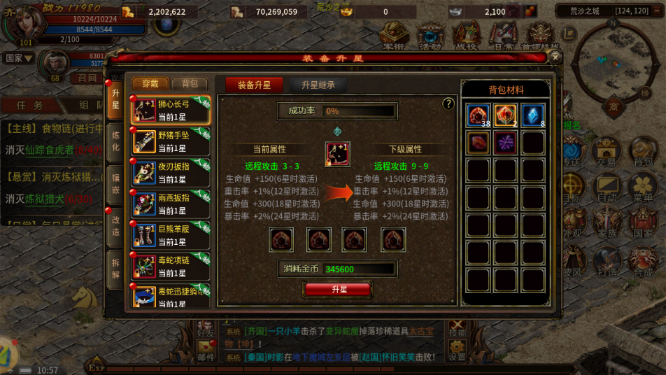 二、打造与装备装备是提升战力的关键因素之一。在游戏中,玩家可以通过多种途径获得装备,如击败敌人、参与活动、完成任务等。获得装备后,玩家需要对其进行打造与提升,以提升装备的属性加成效果。强化或升星装备需要消耗一定的材料,玩家可以通过挑战副本、参与活动等方式获取。同时,玩家还需要注意选择合适的装备,根据职业和属性需求进行搭配,以最大化装备的属性加成效果。