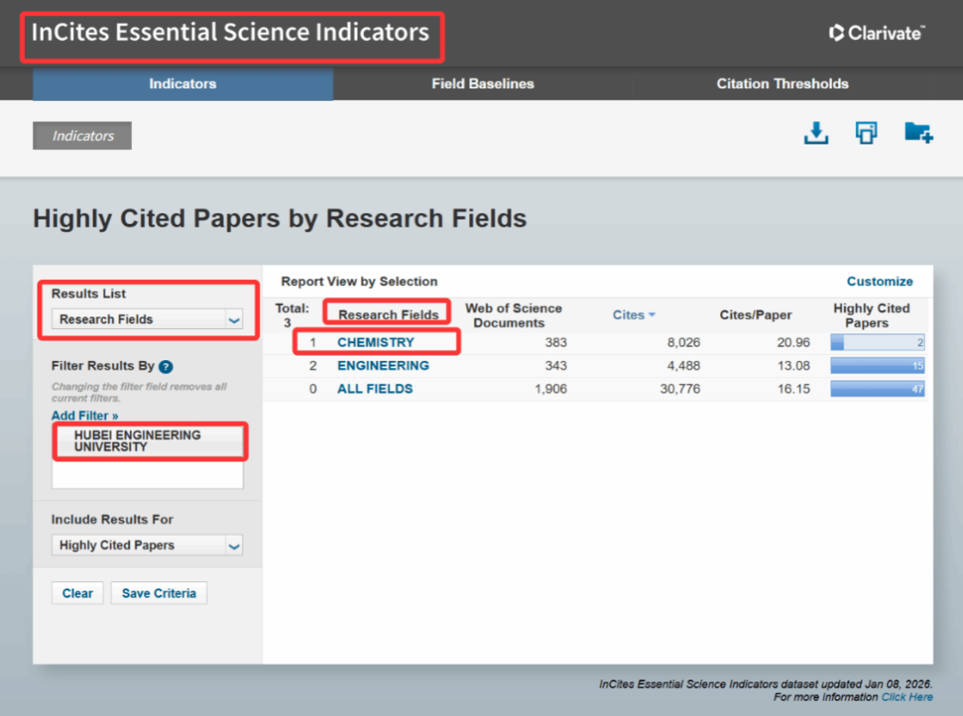 湖北工程学院那边同样有动作 , 就在2026年1月8日ESI的数据刷新了 , 学校的“化学”学科第一次冲进全球前1% , 再加上之前的“工程学” , 如今有两个学科迈入了国际高水平线, 对于一所地方上的本科学校 , 这种进步看得见摸得着。