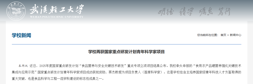 此番再回轻工大 , 平台已然不同 , 武汉轻工大学由国家粮食和物资储备局与湖北省共建 , 是一所“双一流”高校 , 有博士学位授予权 , 该校食品科学与工程学科进入软科世界一流学科排名 , 2025年首次杀入世界百强 , 其ESI全球前1%的学科有五个 , 农业科学更是冲到前2.5‰ , 去年学校牵头两项国家重点研发项目 , 获省部级科技奖30项 , 签订校地校企合作协议839份。