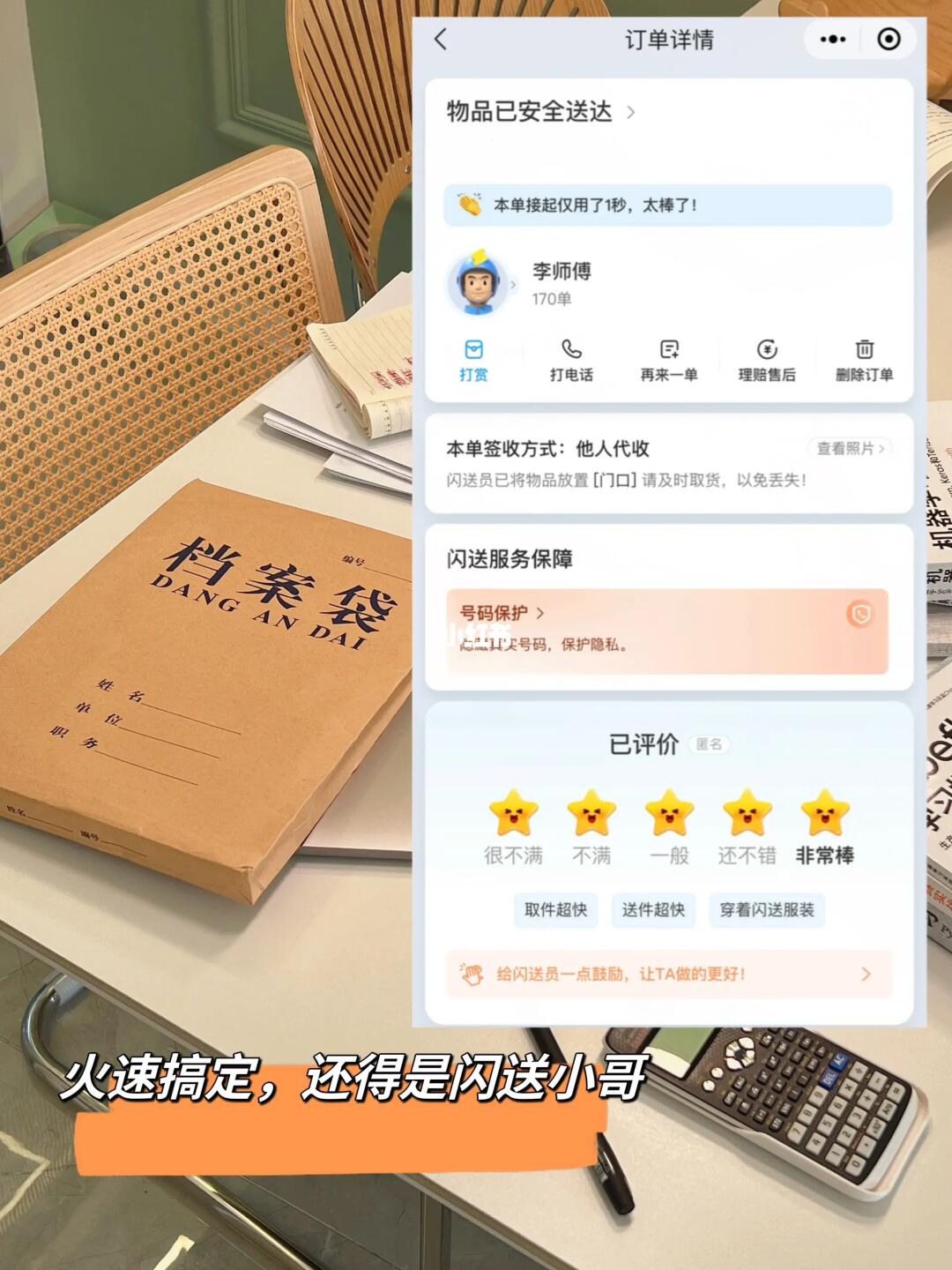 其实闪送帮我大忙都不是一次两次了🍄,之前口罩期间我一点菜都没囤,外卖根本买不到🍅,朋友想给我送菜都出不了小区,当时就靠闪送小哥帮忙给我运菜了🌲,那种特殊时期不管什么时间下单都很快有人接单,那之后对闪送的印象就特别好💵