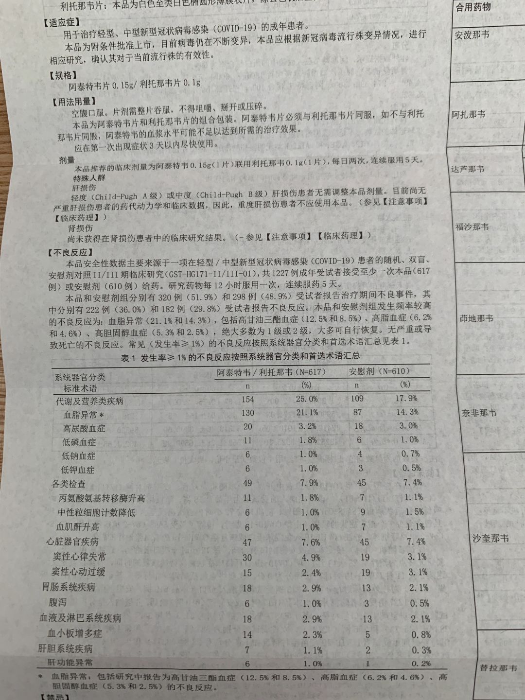 新冠备药:阿泰特韦片/利托那韦片(泰中定)