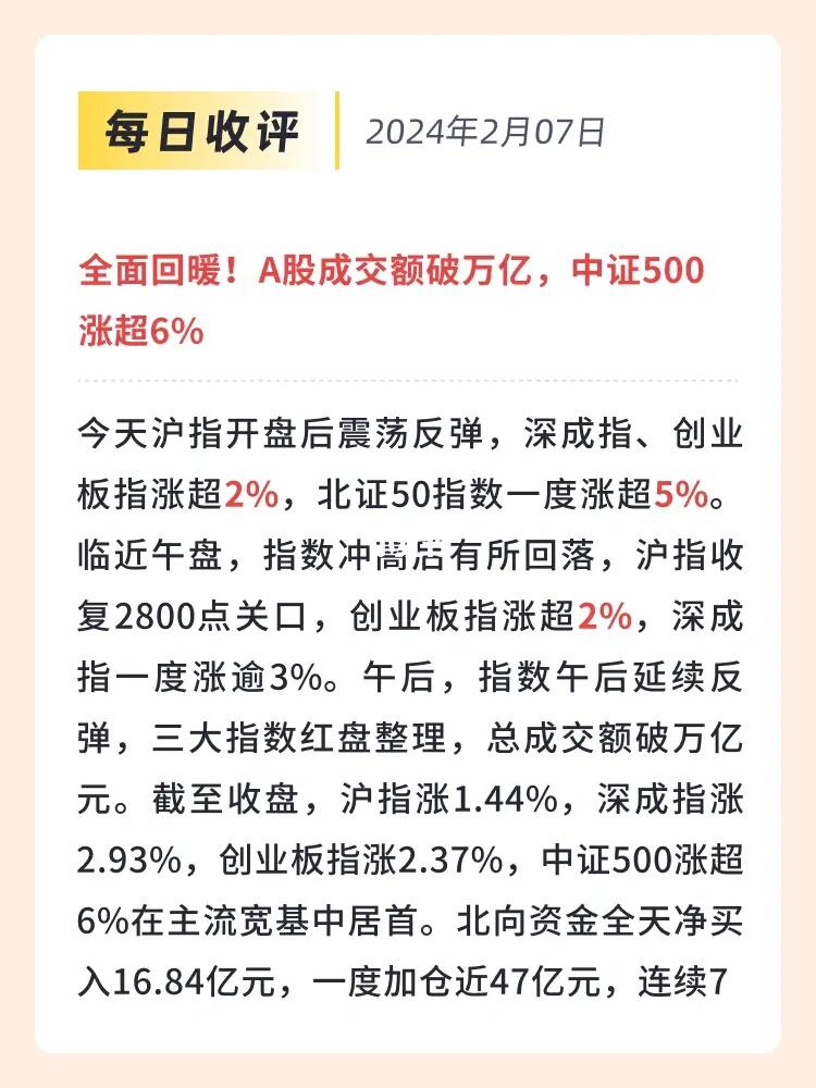 1⃣️ 行情解盘——全面回暖!A股成交额破万亿,中证500涨超6%