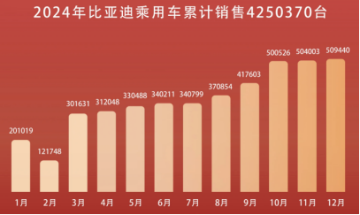 其原有的10万-15万元主力市场也已被比亚迪元PLUS、吉利银河E5等车型迅速瓜分,头部效应愈发明显。例如比亚迪2024年销427.21万辆,同比增长41.26%;吉利2024年全年售出888,235辆新能源汽车,同比增长92%。