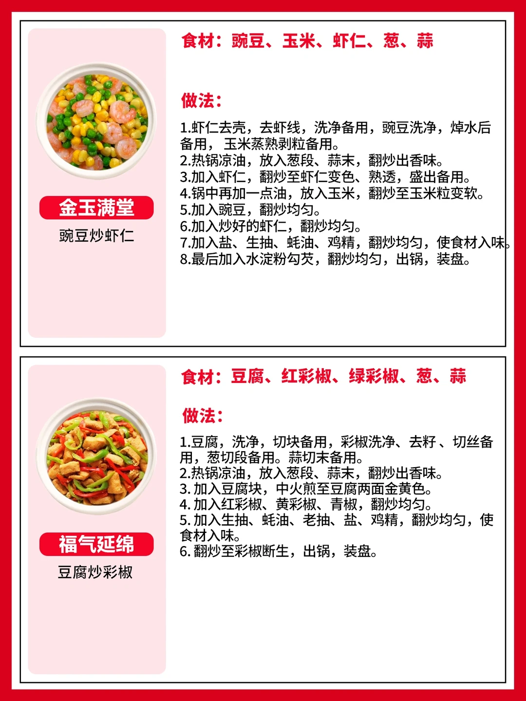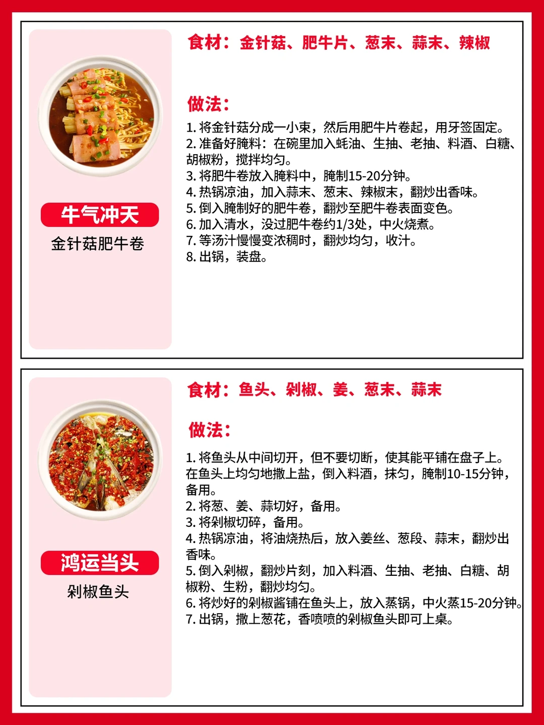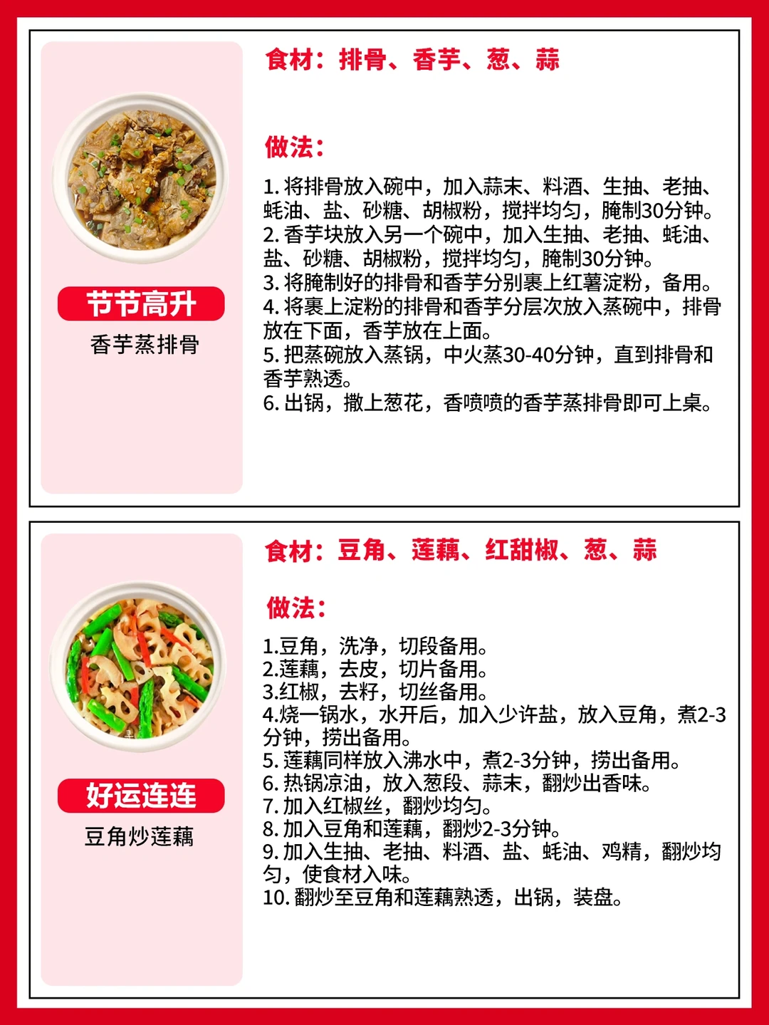 除夕快到, 快来让我看看,是谁还没想好年夜饭该吃啥做啥[微笑R] 今天我分享我家年夜饭菜谱 , 简单好做又好吃, 详细做法在图②—⑨, 快来抄作业❗ . 今年过的菜: 红红火火 蒸蒸日上 大展宏图 牛气冲天 鸿运当头 招财进宝 团团圆圆 腰财万贯 节节高升 好运连连 金玉满堂 福气延绵 花开富贵 年年有鱼 金球报喜 生财有道 . 以上也是我给大家的祝福❗