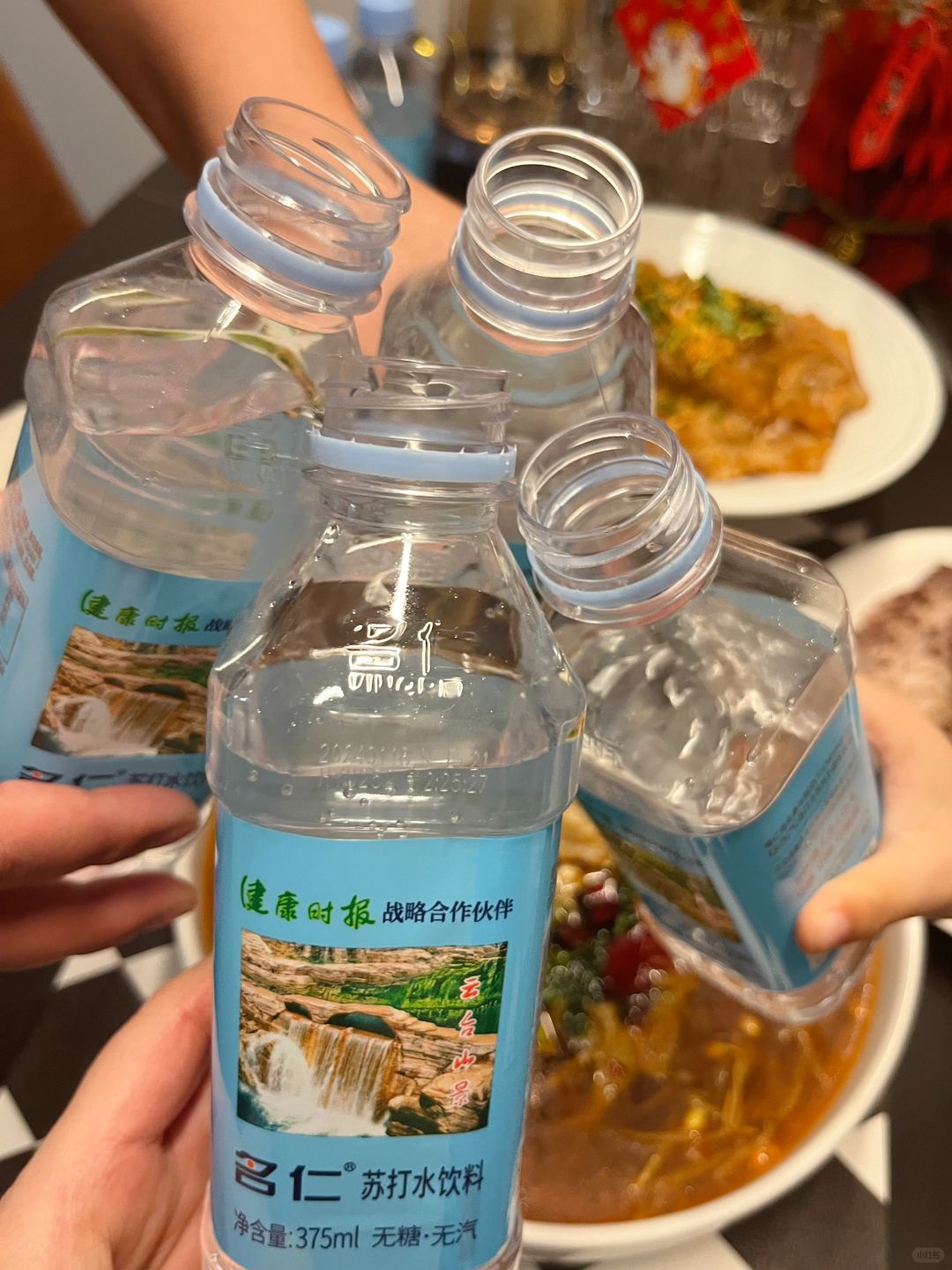 除了好酒好菜招待,还给大家备了名仁苏打水,(被朋友夸上天了,没办法就是心细[萌萌哒R])尤其是喝酒的人,每人一瓶这个苏打水,站线拉的比较长的时候,有的人得喝两三瓶,一边喝酒一边喝这个苏打水,就没那么容易上头,顺便还能补充水分~另外它偏甜的口味在吃一些重口味火锅、烧烤、辛辣的食物的时候佐餐也合适,可以解解腻~