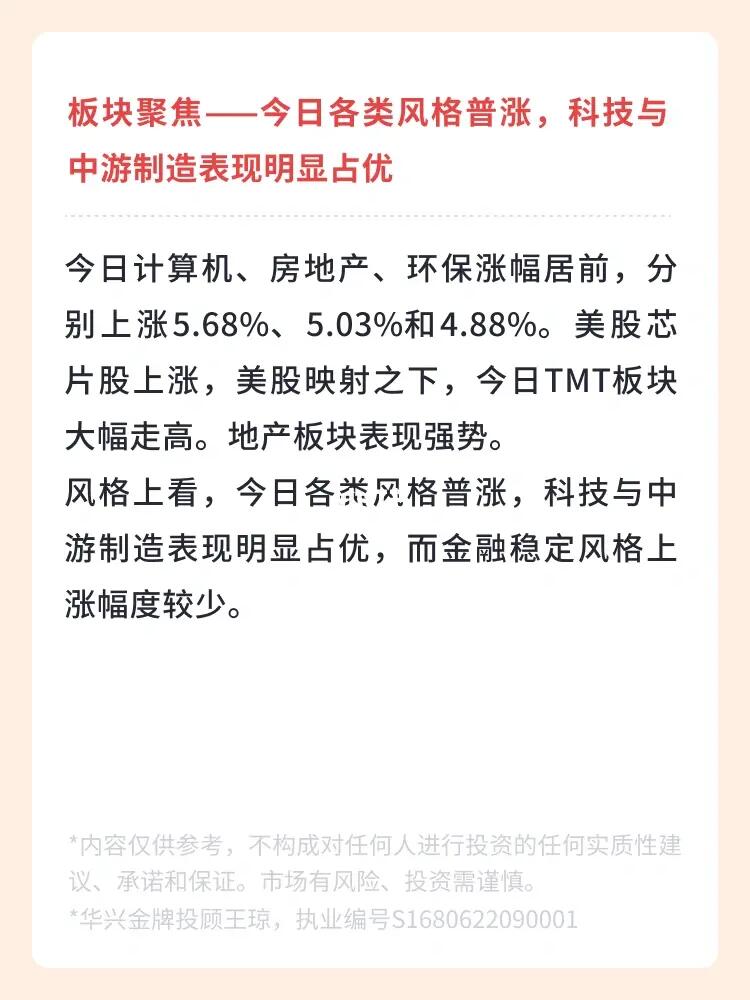2⃣️板块聚焦——今日各类风格普涨,科技与中游制造表现明显占优