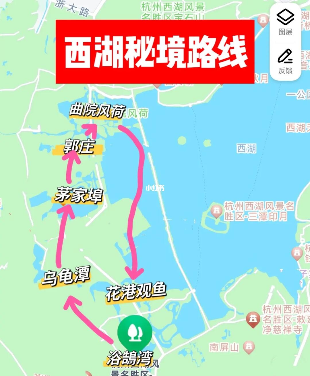 净慈寺-浴鹄湾-乌龟谭-茅家埠-郭庄-曲院风荷-可在这坐西湖自开船,或坐环湖游船探寻西里湖秘境