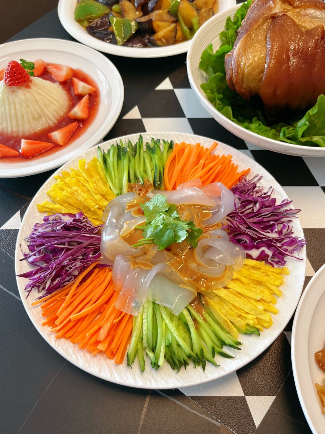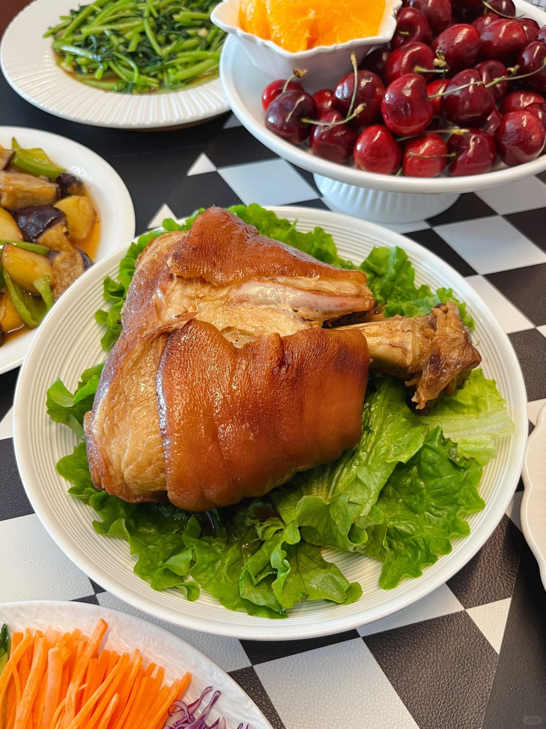 今日菜单: 🥢红烧冰糖肘子 🥢地三鲜 🥢锅包肉 🥢东北大拉皮 🥢草莓山药 🥢大闸蟹 🥢蒜蓉茼蒿 🥢凉拌猪皮冻 [种草R]朋友要回老家啦,于是邀请她来吃个年饭,她说想吃老家的特色菜,我当然是尽量满足啦~也请大家猜猜今天这桌是南方年夜饭还是北方年夜饭?