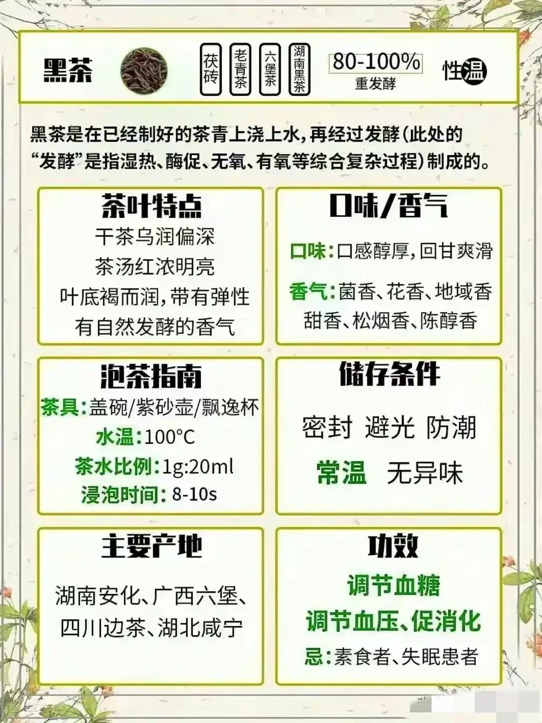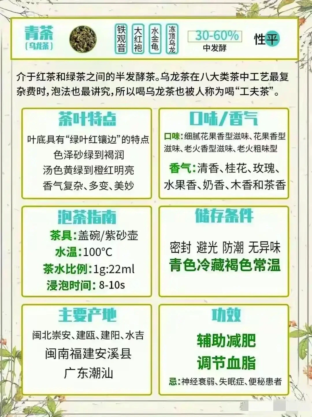 平时喝茶的朋友,你知道中国有六大茶类吗?它们分别是绿茶、黑茶、白茶、红茶、青茶和黄茶,它们的产量也大不一样,光绿茶就占了60%多,可以说是“一茶独大”。下面是六大茶类的产量占比: 序号 茶类 产量占比 1、 绿茶 60.3% 2、 红茶 14.3% 3、 黑茶 12.0% 4、 乌龙茶 9.4% 5、 白茶 2.7% 6、 黄茶 0.3% 那么问题来了,你知道这些茶品类的主要产地分布在哪儿吗以及有哪些著名品牌?喝茶关心茶的朋友,欢迎在评论区发表高见!
