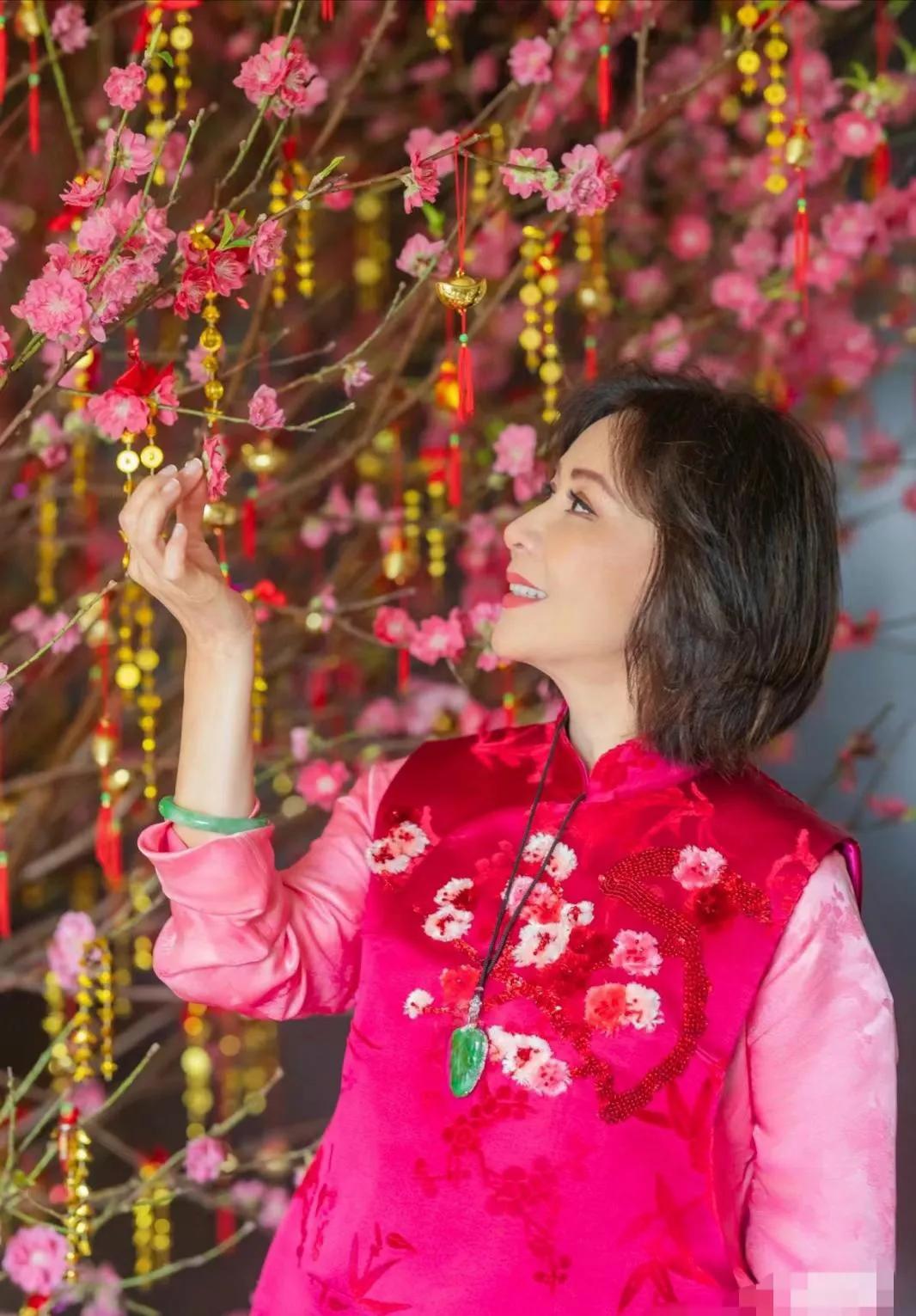 大年初一,刘嘉玲的穿搭美极了。 粉搭红,一身粉红装,外搭一件中式绣花的马甲。和谐又喜庆,简约大气,温婉知性又优雅。蓬松的短发,配上精致的妆容,温柔的气质,尽显东方女性优雅之美。搭配绿宝石耳饰和项链,贵气范十足!#万能生活指南#