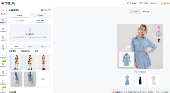 易可图是一款专注于电商领域的在线AI设计平台,它的AI模特试衣功能可以一键将服装平铺图转化为逼真的模特上身效果图。