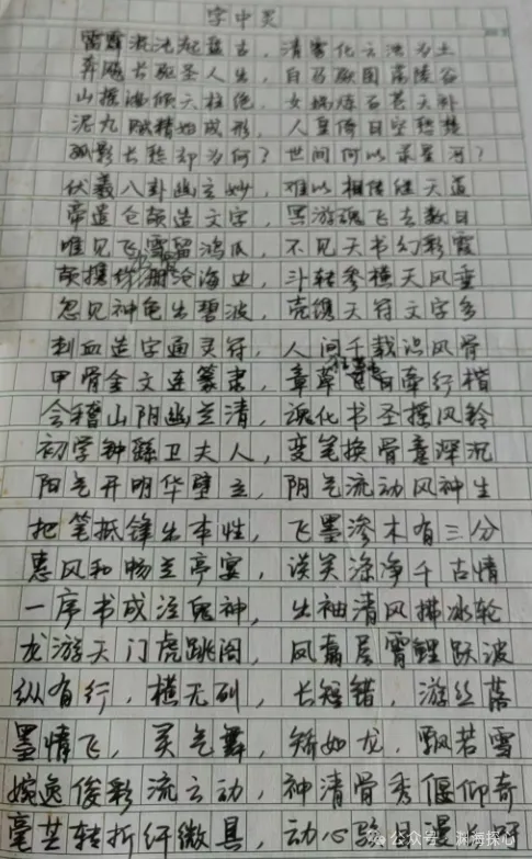 在老家整理书柜时,偶然翻出了高中时代写的一首旧诗《字中灵》,当然还有很多当时写的文章和故事。泛黄的纸页上,字迹虽已有些模糊,但读来仍觉那时的文字里藏着一股未凿的灵性。于是忍不住重新打磨,为它换了一个名字——《墨魂》。