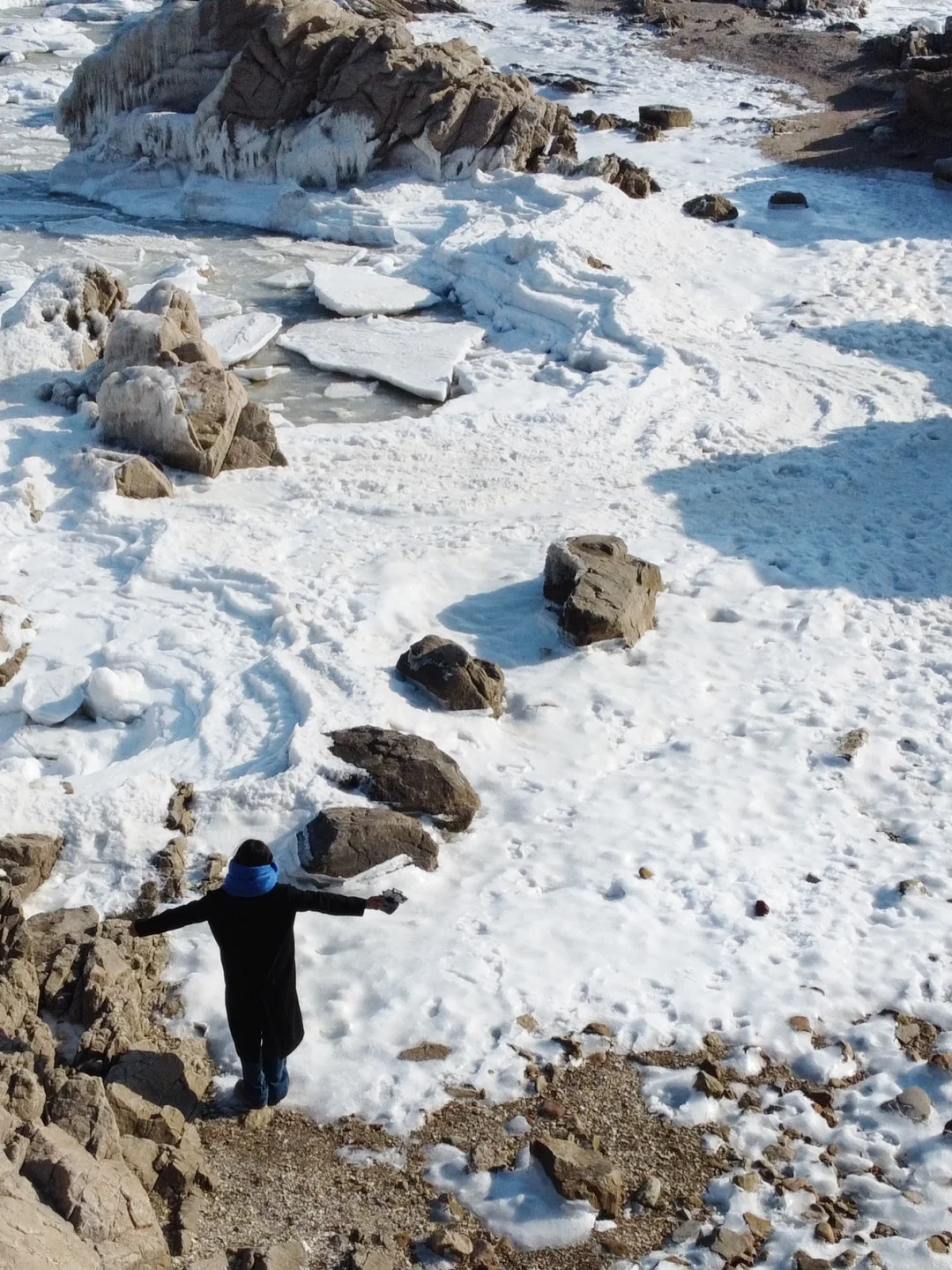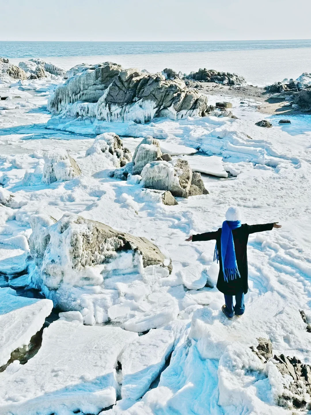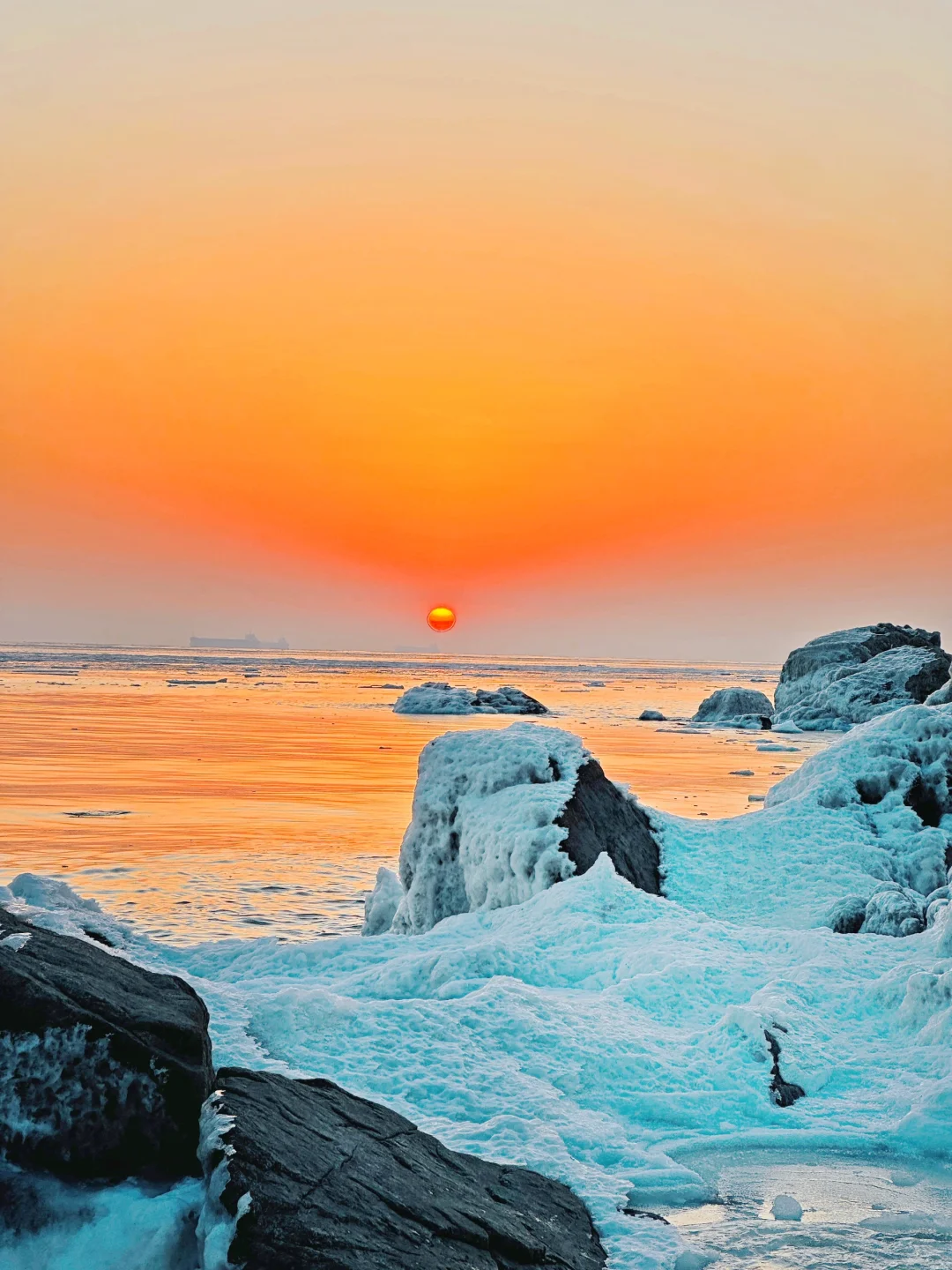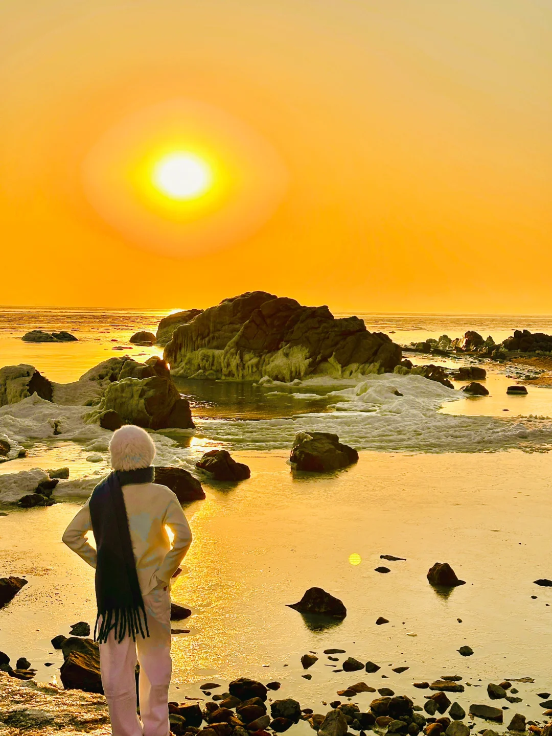 日出冻海礁石真的非常美,pyq都以为是国外
