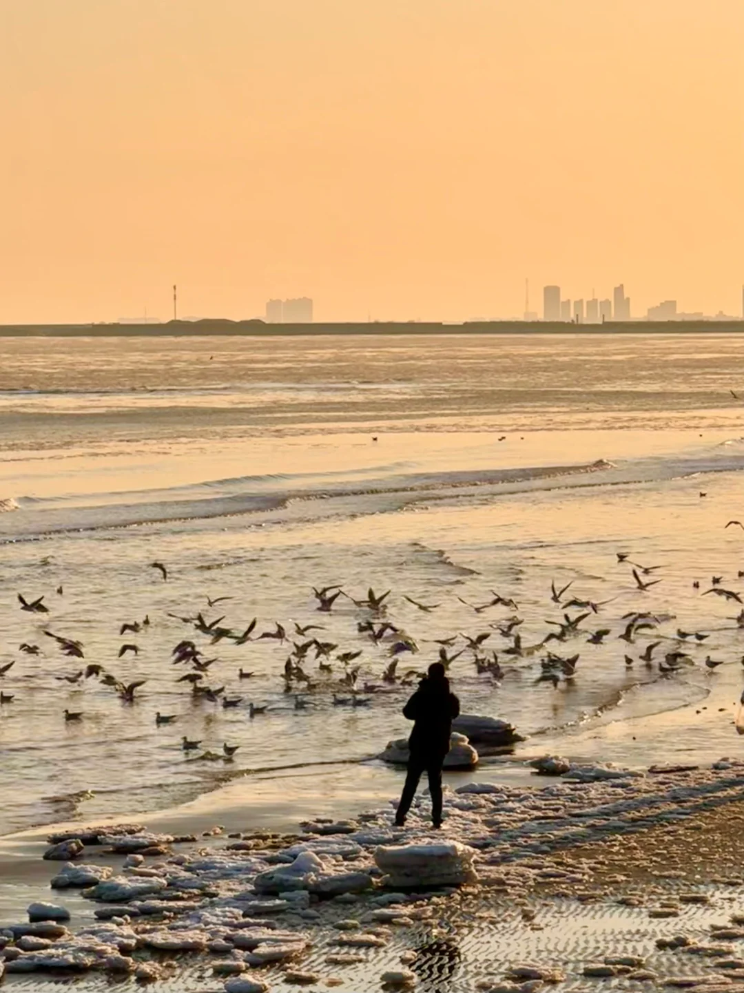 海天一色看日出➡️老虎石喂海鸥➡️下午1点返回海天一色看白色的冻海➡️蔚蓝海岸日落