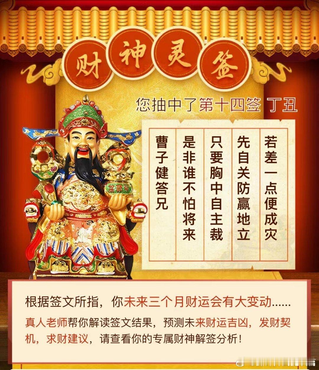 龙年财神爷赐福,心诚则灵!给大家推荐一个超准的财神灵签,对近期财运有疑惑的,想赚更多钱的,都可以抽签看看。