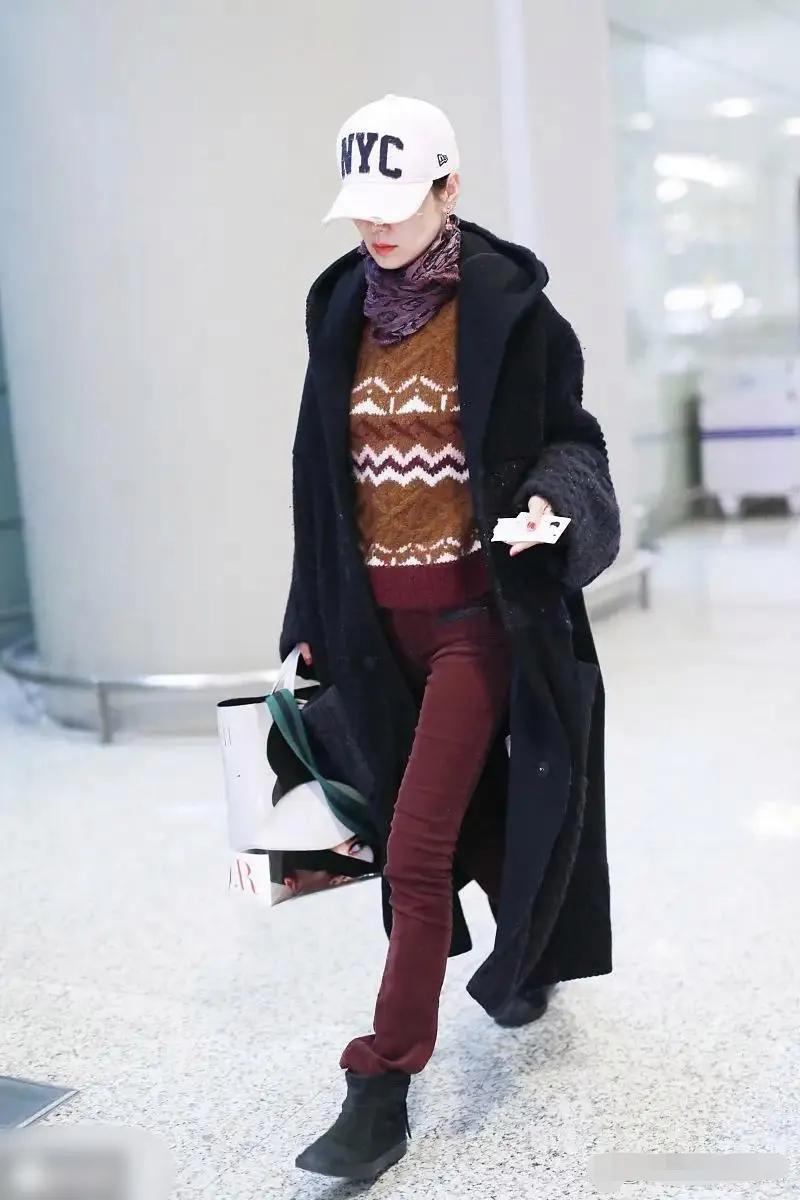 被马伊琍机场造型惊呆了,一般人hold不住!一条深红色的长裤搭配一双黑色雪地靴,不得不说马伊琍的身材条件还是非常好的,即使在显高显瘦效果不明显的穿搭下,依旧能穿出一种时尚感。让人觉得一点都不难看,反而与众不同!#马伊琍造型# #马伊琍穿搭# #万能生活指南#