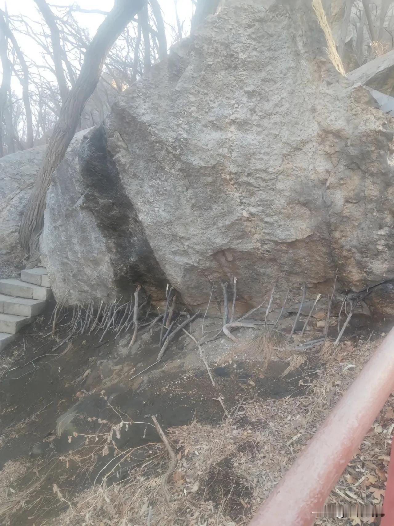 我们老家把这块岩石叫撑腰石,砍柴的人路过这里时放上一根树枝撑着,说是再重的担子都不觉得累了。