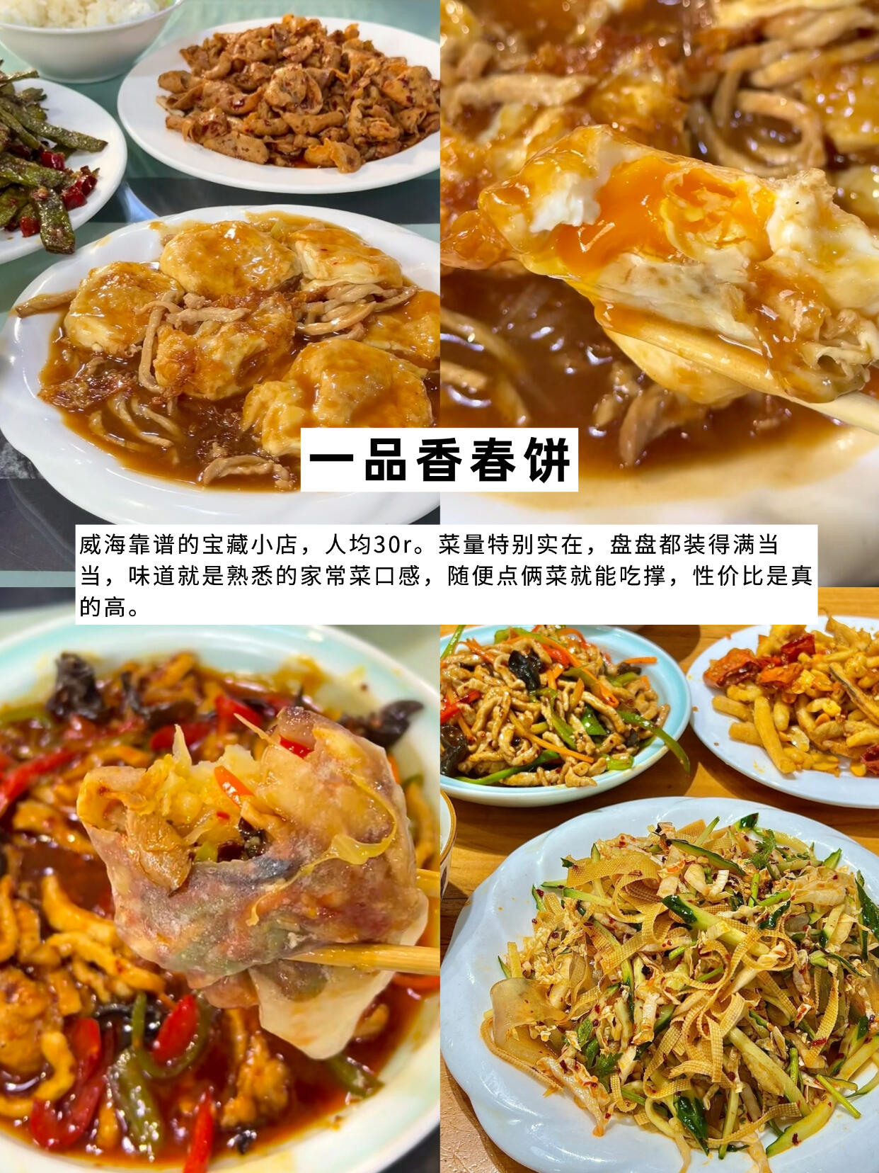 [星R]一品香春饼:威海靠谱的宝藏小店,人均30r。菜量特别实在,盘盘都装得满当当,味道就是熟悉的家常菜口感,随便点俩菜就能吃撑,性价比是真的高。