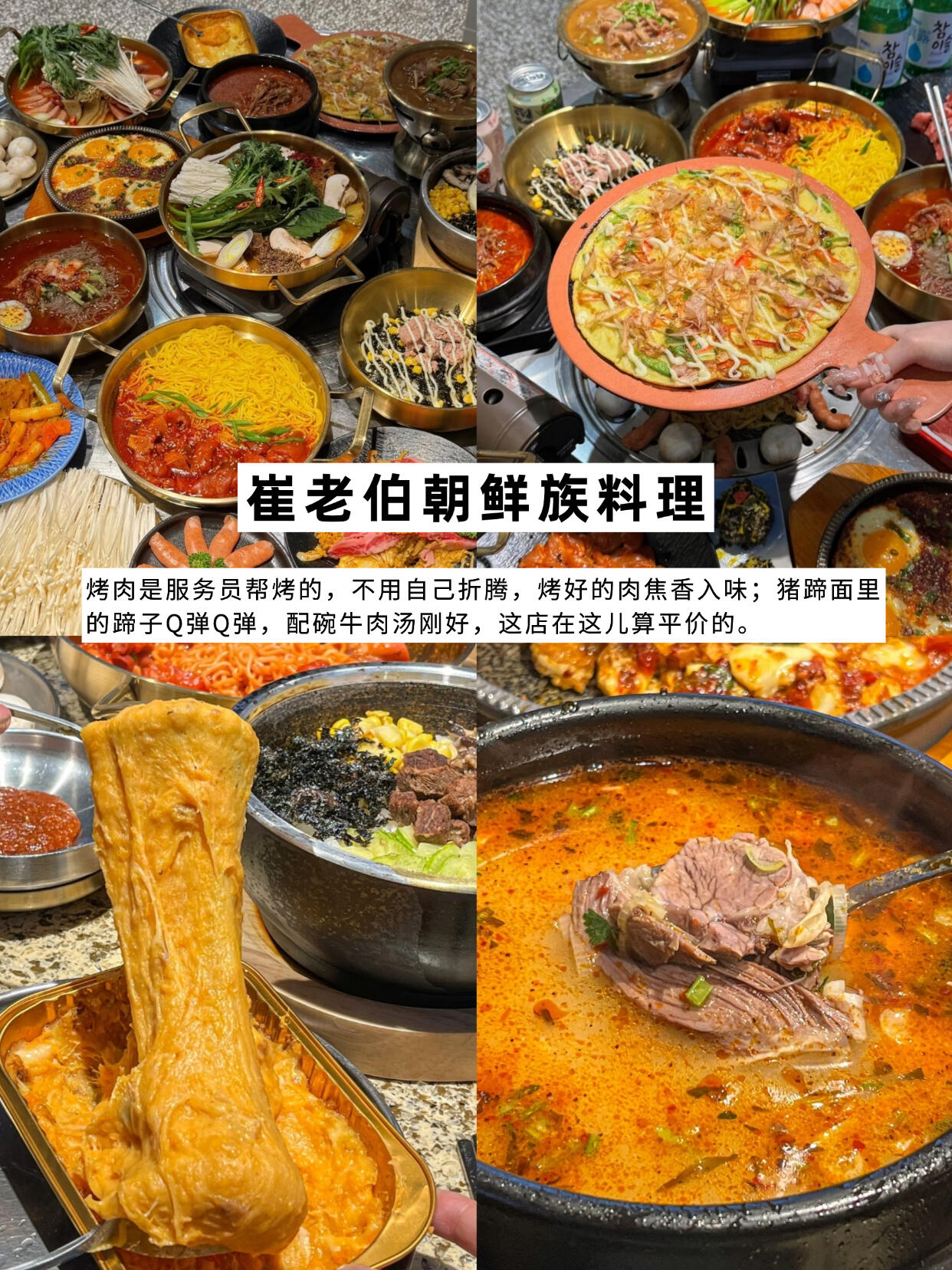 [星R]崔老伯朝鲜族料理:烤肉是服务员帮烤的,不用自己折腾,烤好的肉焦香入味;猪蹄面里的蹄子Q弹Q弹,配碗牛肉汤刚好,这店在这儿算平价的。