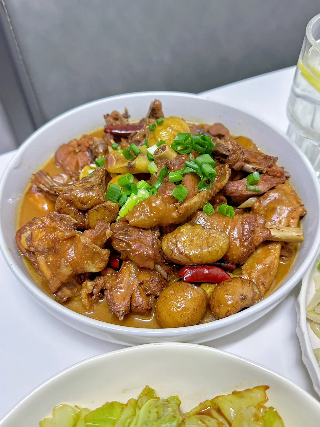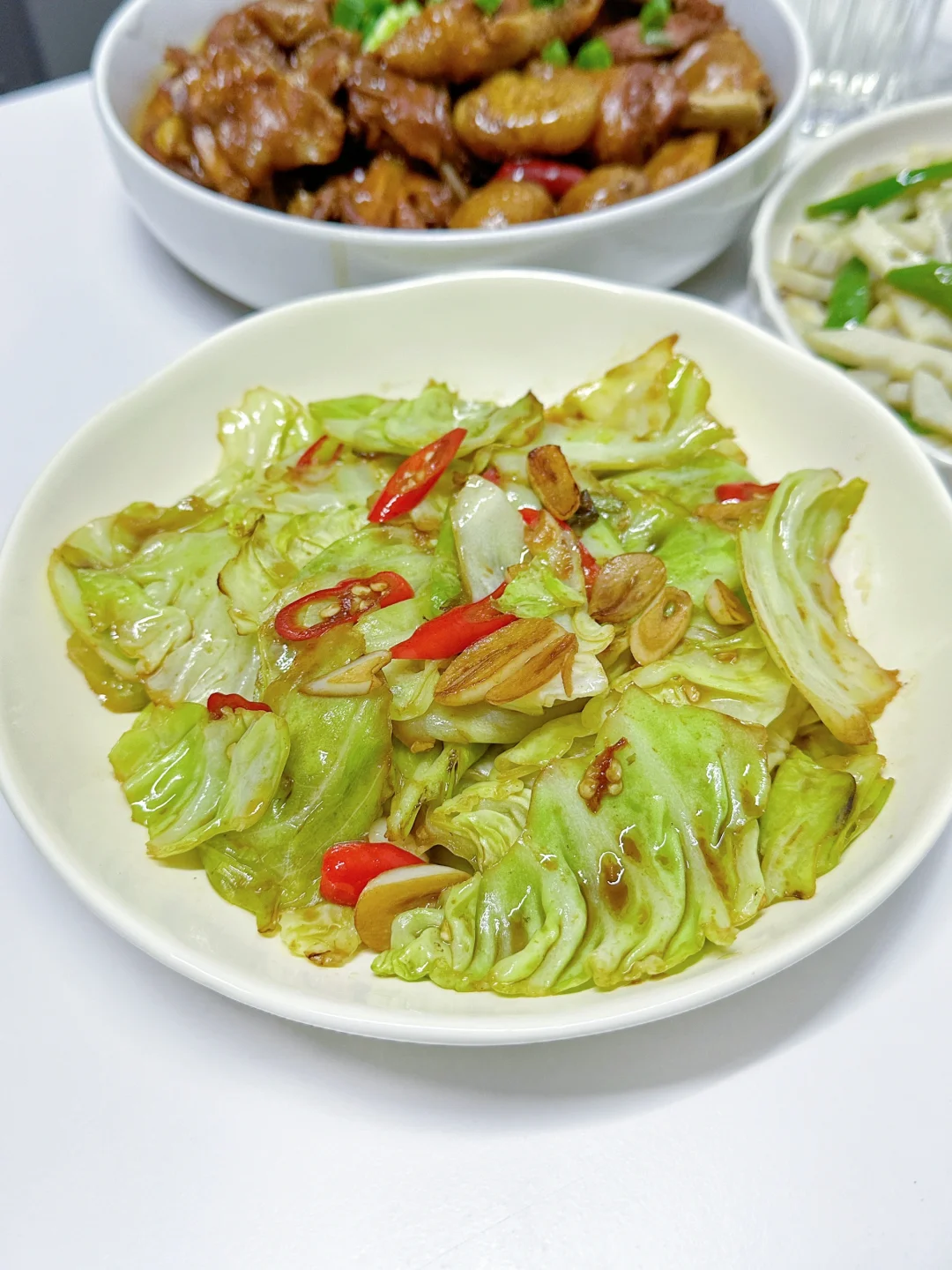 板栗烧鸡 手撕包菜 青椒藕丝🌈