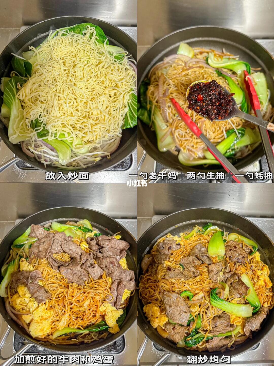 百吃不腻的炒面 每当晚上饿的时候就想念路边的表面 奈何天太冷,懒得出门 自己在家轻松搞定 🗒️食材:炒面/鸡蛋/青菜/洋葱/牛肉/豆芽 👩🏻🍳制作: 1️⃣鸡蛋炒熟捞出备用,牛肉煎熟 2️⃣洋葱丝翻炒炒软加入青菜,豆芽菜翻炒 3️⃣放入炒面➕一勺老干妈➕两勺生抽➕一勺蚝油 4️⃣翻炒均匀,加入炒好的鸡蛋和牛肉