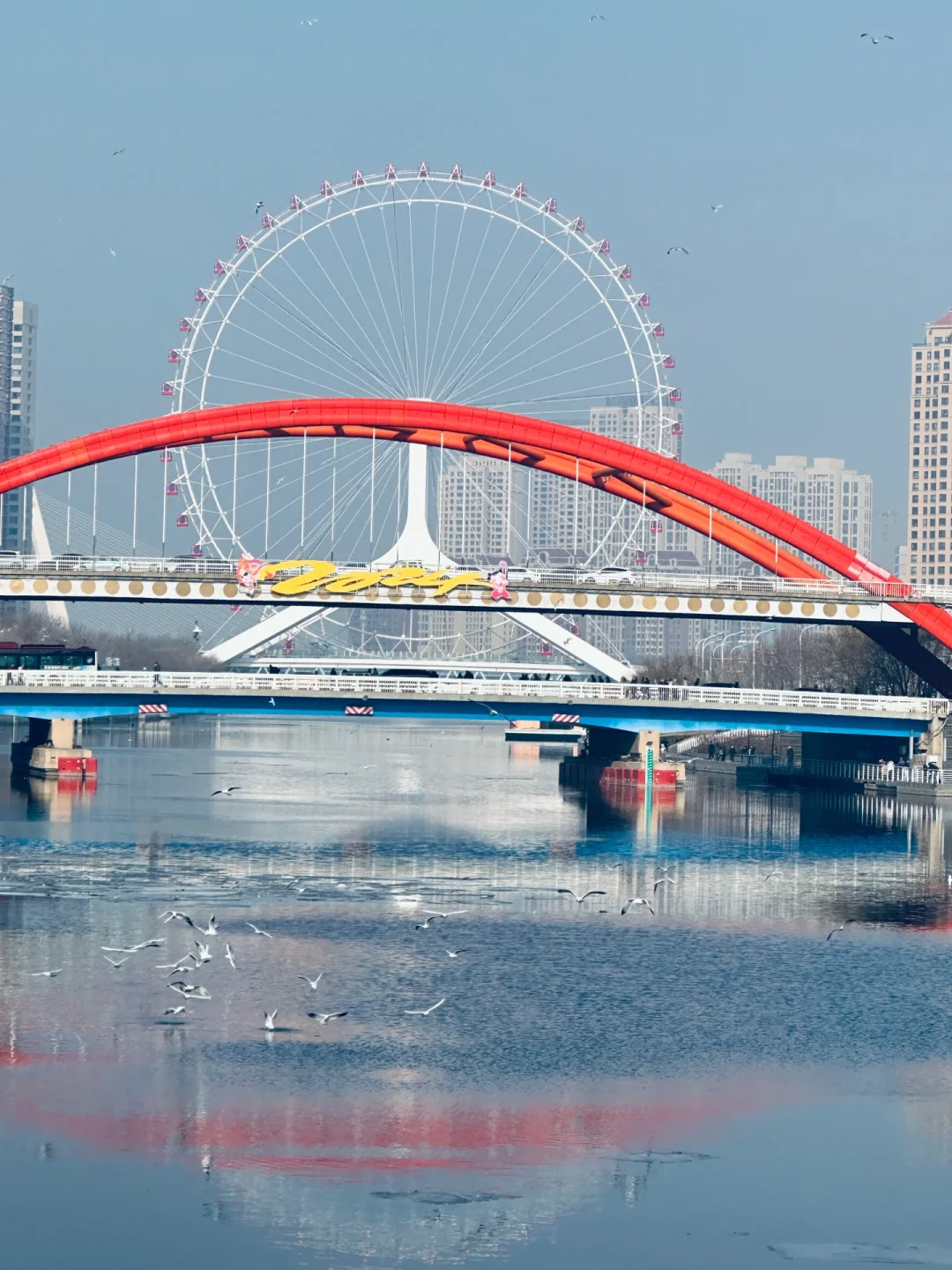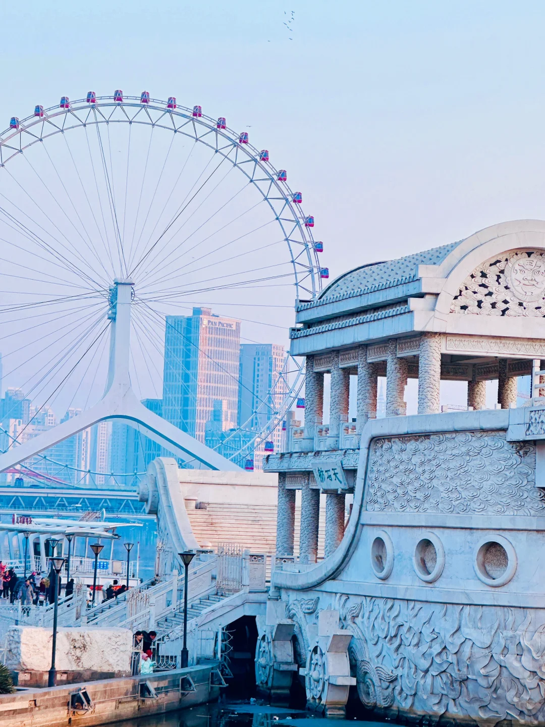 天津地标🎡,可以拍海鸥、摩天轮🎡、海河……拍摄位置在李公祠大街东侧(靠近天石舫码头),有一处高平台,可以轻松get与摩天轮🎡合影