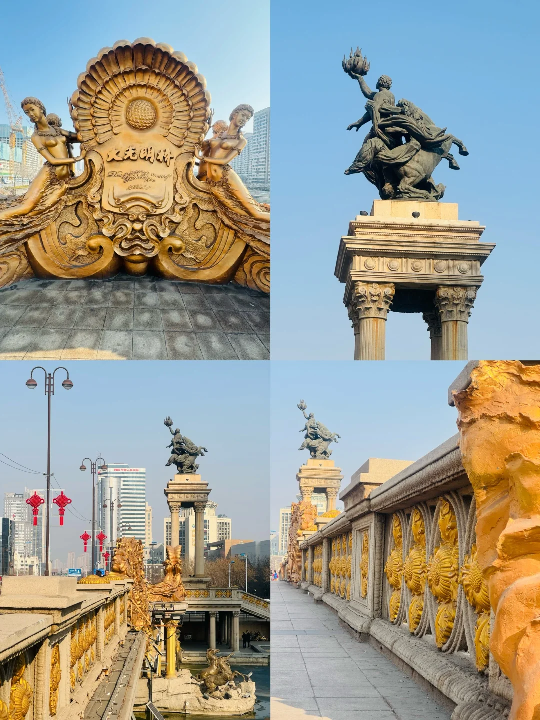 每一个石柱上都有一个铜狮子🦁形态各异,在这里可以看天津大爷跳水,还可以拍马路对面的望海楼教堂
