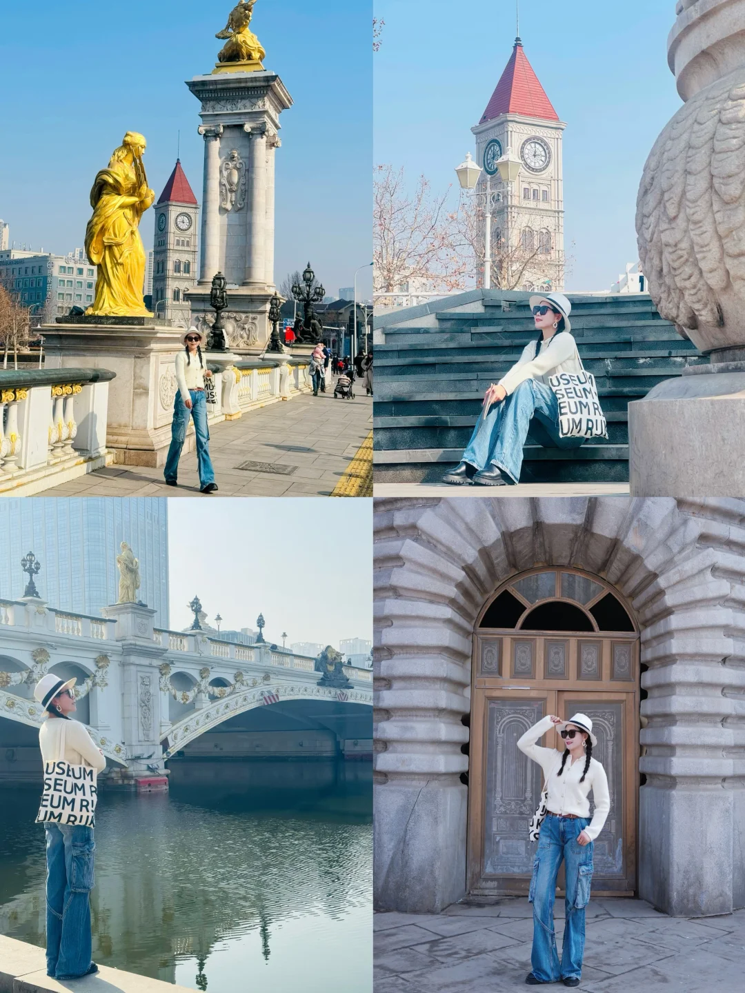 天津之眼➡️金刚桥➡️狮子林桥(望海楼教堂)➡️金汤桥➡️北安桥➡️瓷房子➡️常德道71号➡️大光明桥➡️泰安道五大院➡️解放桥(世纪钟)➡️返回天津之眼(回程)