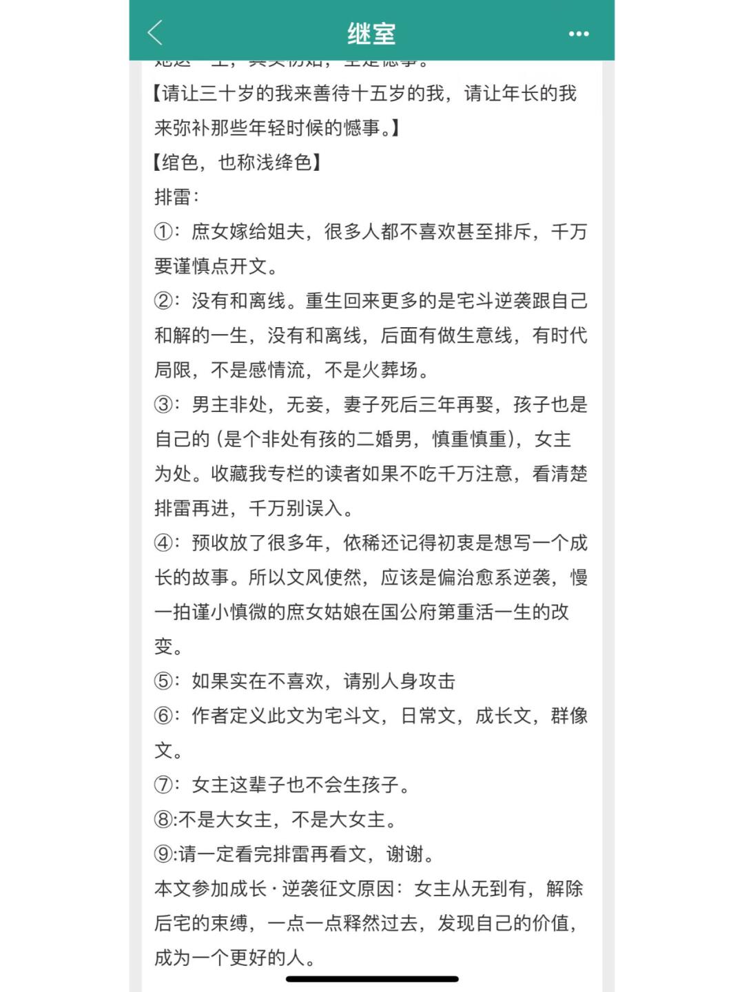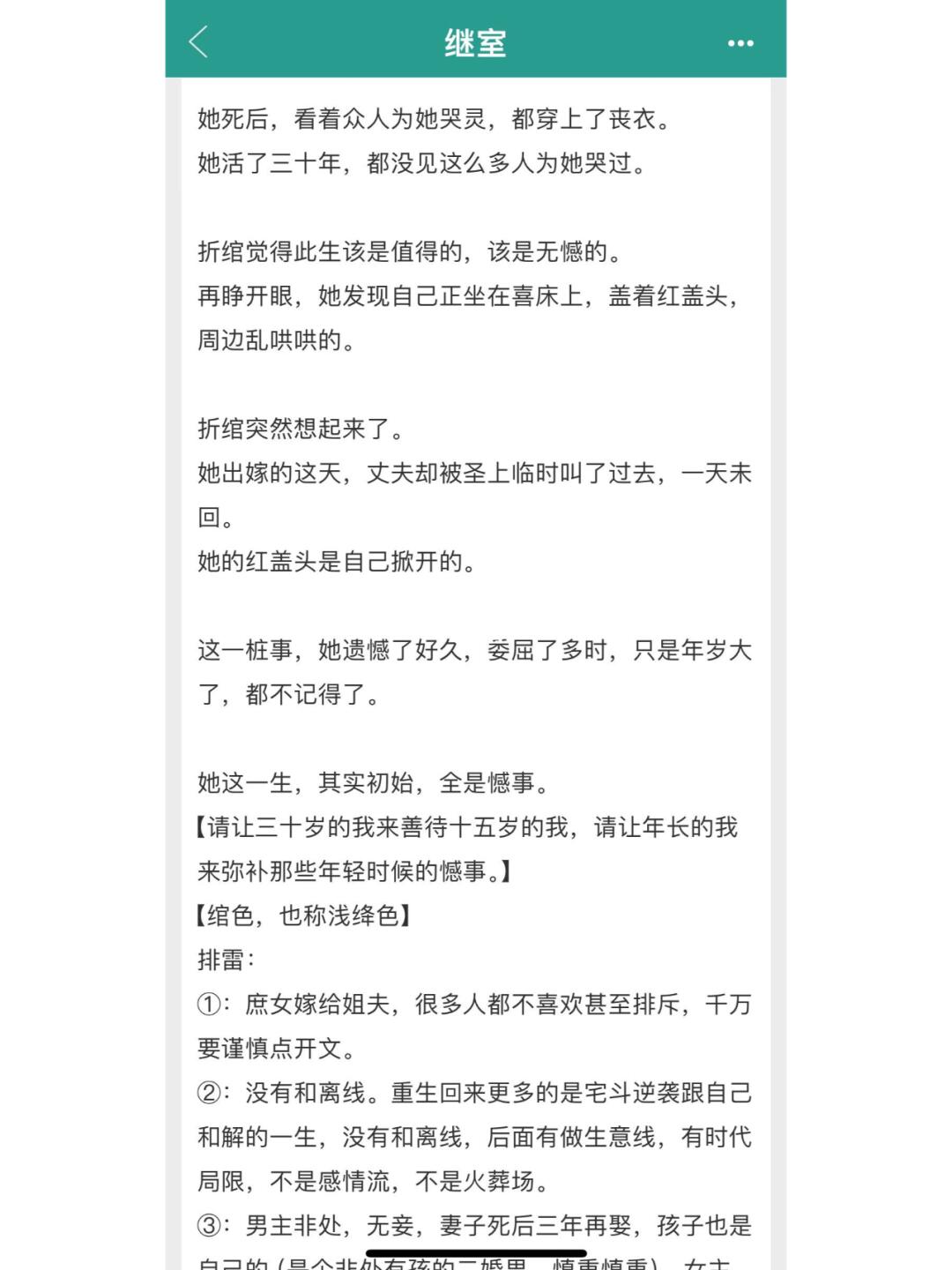 *女主前辈子被pua、被心理折磨,看着身边的人一个个因为自己的无力而离开,患上了抑郁症(当然古代没有这个说法,但一看便能知道)。后来女主重生在成为继室的新婚之夜,这一次她决定为自己而活,决定走出上一辈子没走过的路。