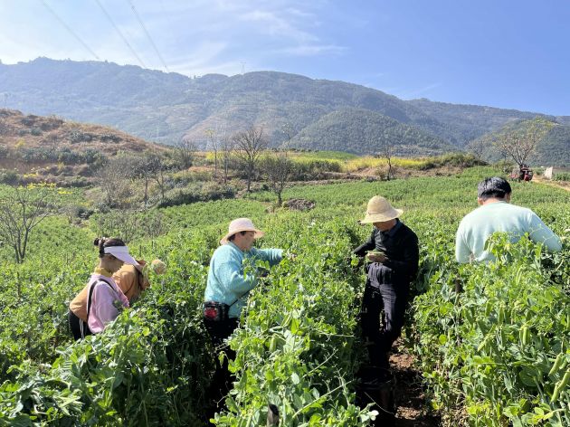 迎着初春的暖阳,走进蒲缥镇杞木林、大田、核桃、双河等村寨,放眼望去,田间地头一排排整齐的“绿篱笆”映入眼帘,枝条上挂满了一串串鲜嫩翠绿、颗粒饱满的青豌豆。忙碌在采摘、装袋、搬运、装车等各个环节上的豆农,脸上无不洋溢着幸福的笑容。