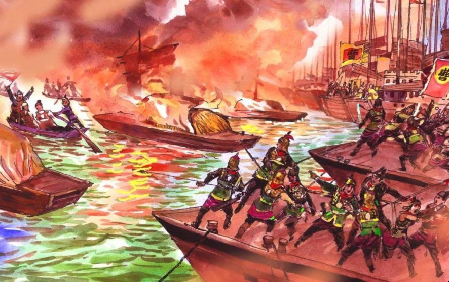 黄盖,这位东吴的老将,挺身而出,自愿前往曹营诈降。他带着装满易燃之物的船只,趁着东南风骤起,冲向曹操的舰队。火势瞬间蔓延,曹操的连环船陷入一片火海之中。曹军大乱,士兵们惊慌失措,互相践踏,伤亡惨重。