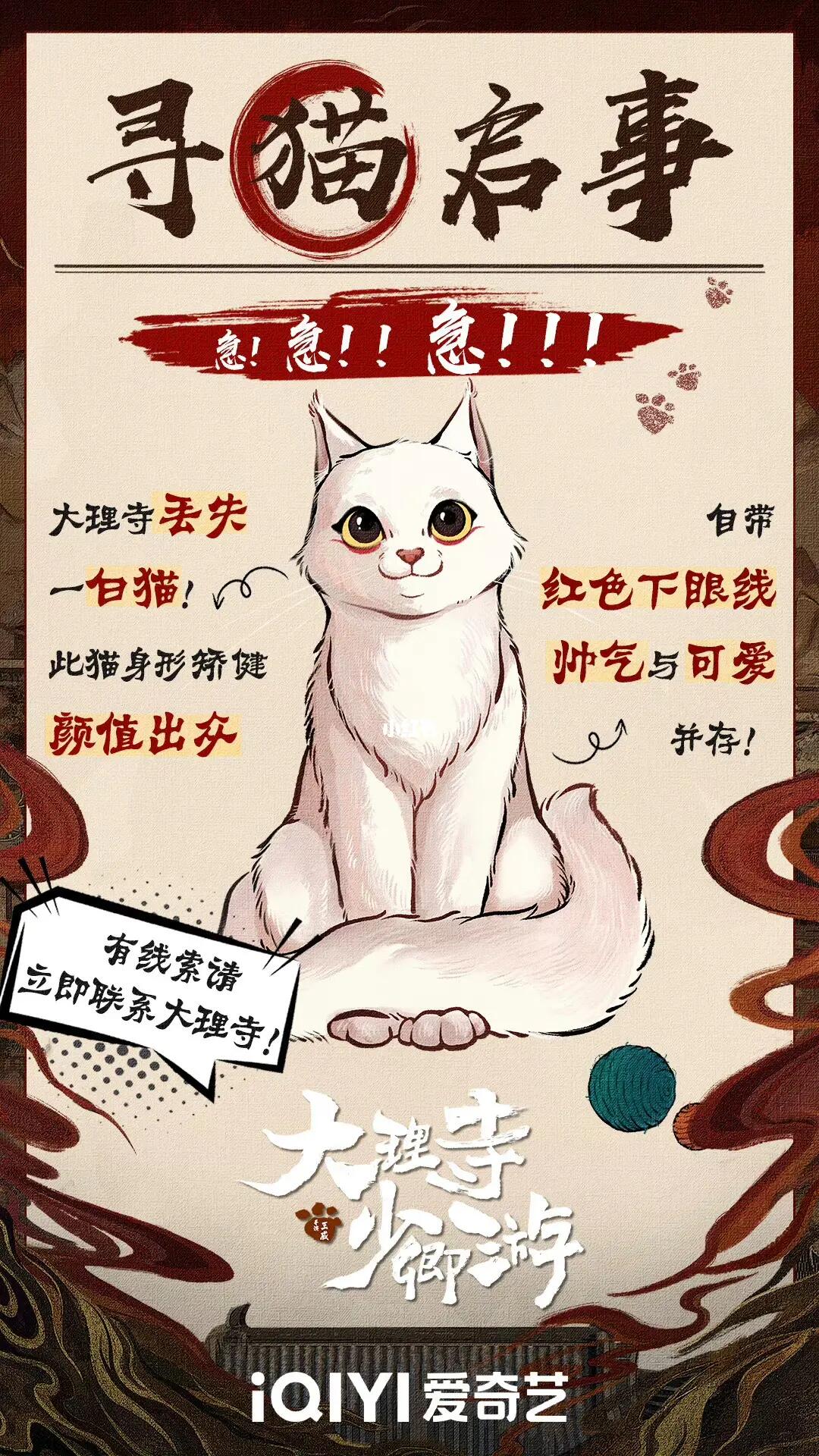 ✨导演:王威 ✨主演:丁禹兮 / 周奇 / 丁嘉文 / 张奕聪 / 冯满 / 娃尔 ✨平台:2月20日 ✨简介:受女皇赏识的白猫李饼被封为大理寺少卿,大理寺众人在李饼的带领下,拨开神都层层迷雾,在相互扶持中坚守内心正义的故事。该剧为高分人气动漫《大理寺日志》首部漫改真人剧。 ✨ 神都奇案层出不穷,关键时刻还得是猫猫出手!然而外有金吾卫横插一手,内有“丢人”下属bug满满,且看饼爷如何扭转乾坤,大力出奇迹!