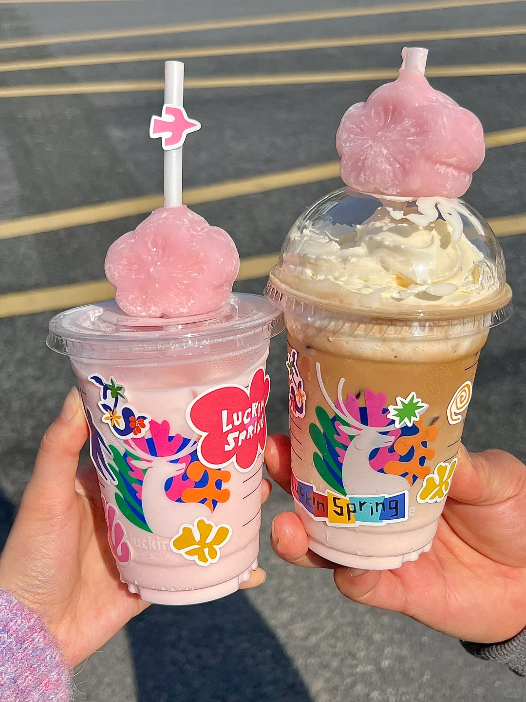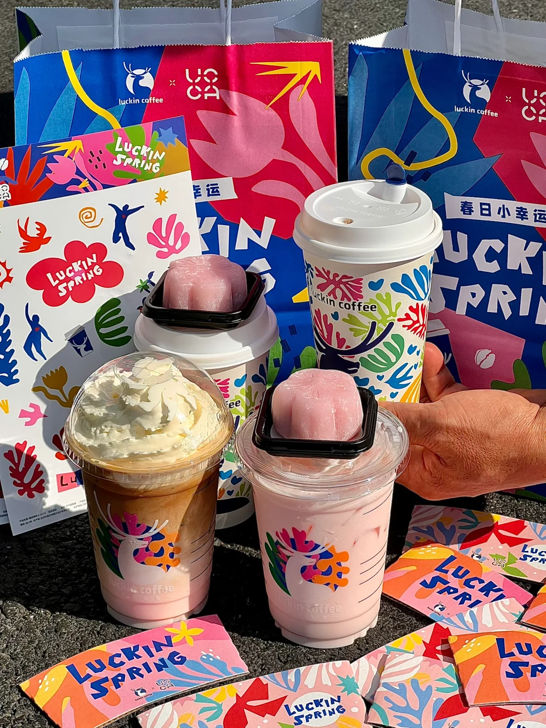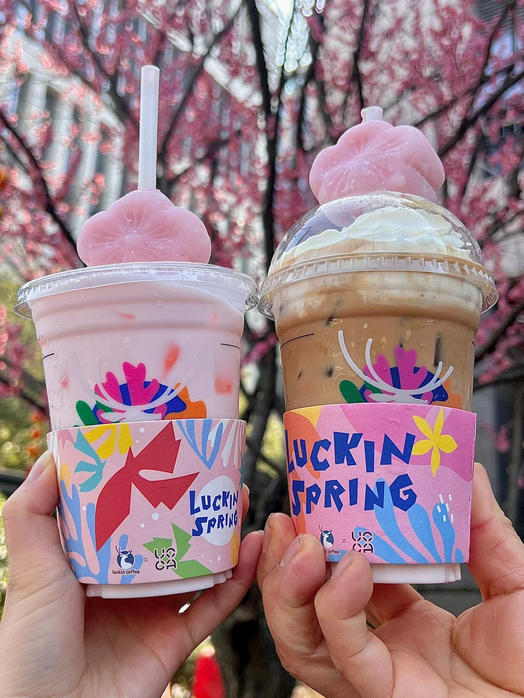 瑞啊 你不宣传这两杯真的糊涂啊。。。。 真的希望这两杯樱花🌸新品永远不下架😭😭😭 今年居然还和UCCA马蒂斯作品联名~ 杯套、纸袋、贴纸、杯子都设计感满满,好心水❤️ . 🌸珞珈樱花拿铁 有奶油or无奶油两个选项!颜值真的hin高👍不愧是饮品届的刘亦菲~樱花风味和咖啡融合的恰到好处! 🌸 樱花小铁 喝不了咖啡的小宝们可以点这杯哦~0️⃣咖啡0️⃣卡糖!好好喝颜值又高!!! 🌸粉樱荔荔大福粉粉嫩嫩,里面的夹心也好吃!