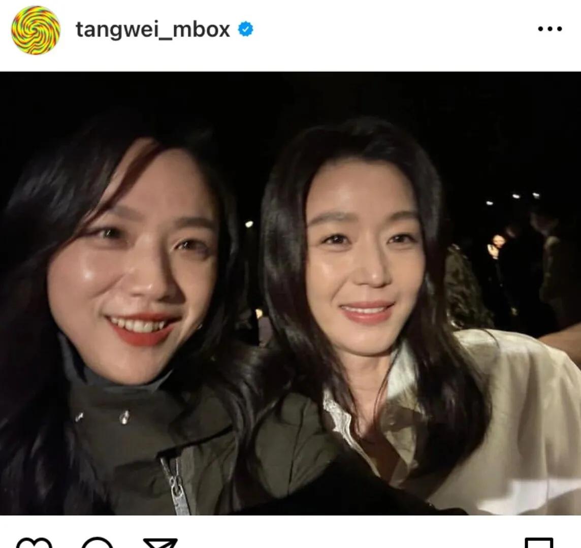 汤唯的内心强大到可以生图出镜! 汤唯晒出的和全智贤的合拍引起了热议,竟然是无任何