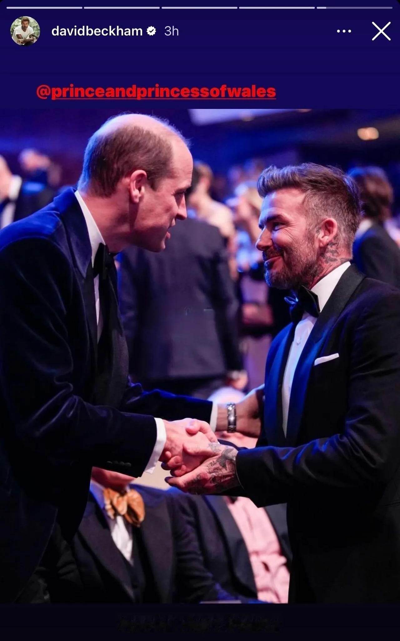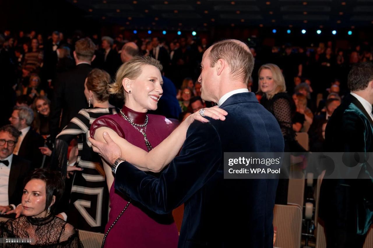 威廉独自现身BAFTA Film Awards,今年少了凯特的陪伴,据传凯特王妃还在养伤。 看起来威廉心情不错,面带微笑和Cate Blanchett以及贝克汉姆交谈!#国外明星新鲜事# #小贝小七近照#