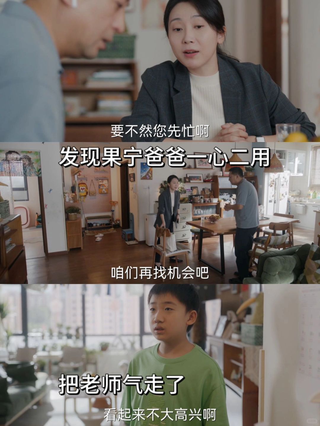 🔥其实啊,比起老师和学生更怕家访的难道不是家长吗❓果宁老师一到家家访,戴静这头招呼老师,另一头着急出差;刘向上也没闲着,戴着耳机听语音还得迎合老师,听不听得进去不知道,给老师可没留啥好印象......这年头家长也难做,一边忙工作一边孩子也不省心呐‼️‼️