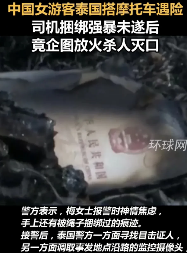 中国女游客泰国搭摩托车遇险,司机捆绑强暴未遂后,竟想杀人灭口,目前警方已介入调查。