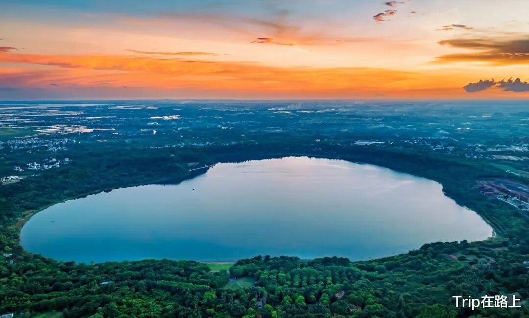 02湖光岩:火山口下的蓝宝石出市区往西南十余公里,就是湖光岩世界地质公园。这是中国唯一的玛珥湖,也是全球保存最完整的古火山口湖之一。