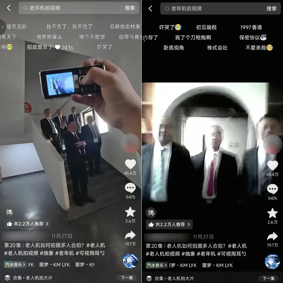 模糊到连人脸都看不清的高糊座机画质+抖动得像是食堂大妈亲自操刀手持拍摄+被拍摄者狰狞的表情,夸张的手部动作,再配上一首紧张感拉满的BGM。