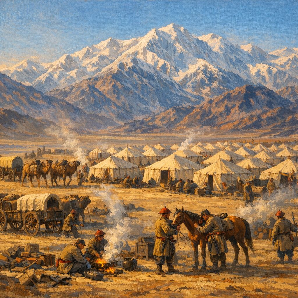 左宗棠在后勤方面下了极大的功夫。他提前在沿途设置了粮站和转运站,安排了大量的骆驼和马车负责运输。他还命令部队沿途屯田,在有水源的地方种庄稼,尽量实现部分自给自足。