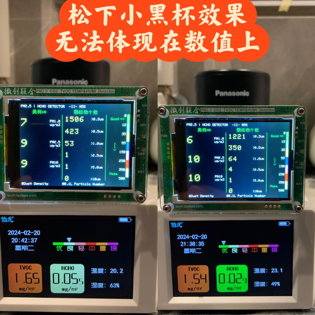 这次出差正好赶上全国大范围雨雪,高铁晚点接近两个小时[汗颜R]。好在上车后,车厢人很少,就是车厢共振很大,晕车的感觉[汗颜R] [哇R]这次带的装备:对脸吹4lite,松下小黑杯,医芯02i,护目镜,支架口罩,次氯酸喷雾,卡拉胶鼻喷,酸化水鼻喷,生理性海水,防疫香囊,各种补剂等。[偷笑R] [微笑R]考虑到车厢人少,4lite没开,没带护目镜,医芯没开。就开了个小黑杯,慎买。松下的nanoeX技术,就是高压电离冷凝水产生羟基自由基,除异味的效果比较明显,但是数值测出来没变化。其他效果有待观察