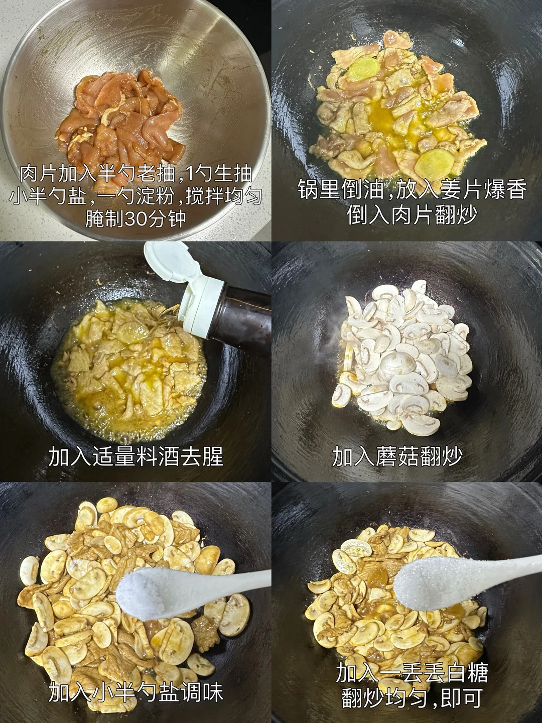 食材:蘑菇 肉片 生姜 小葱