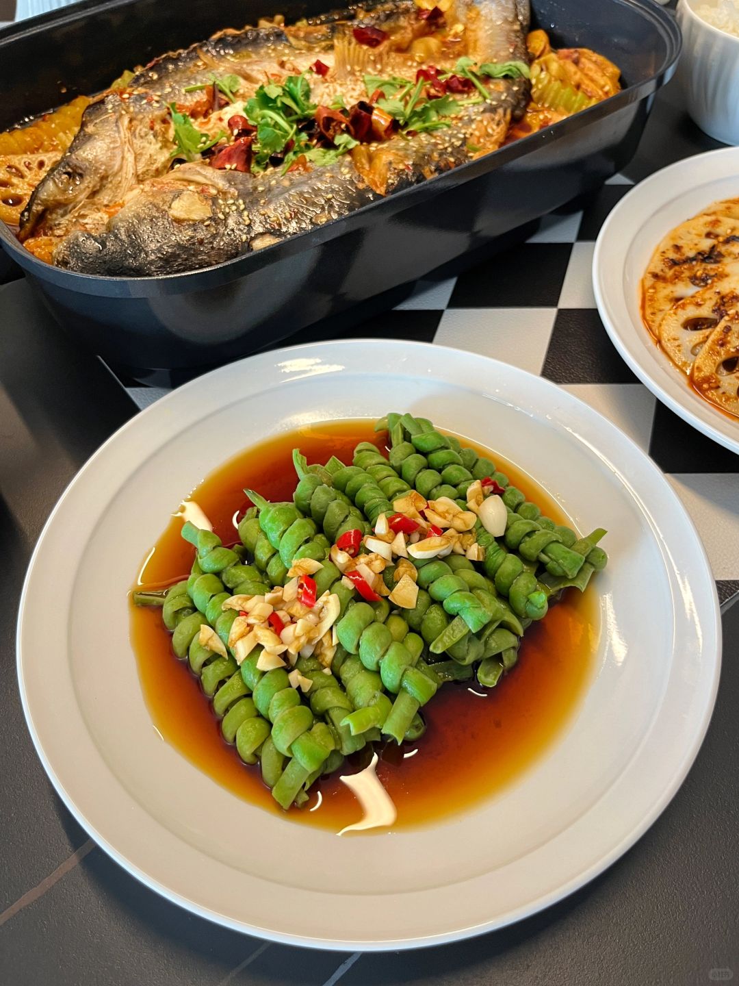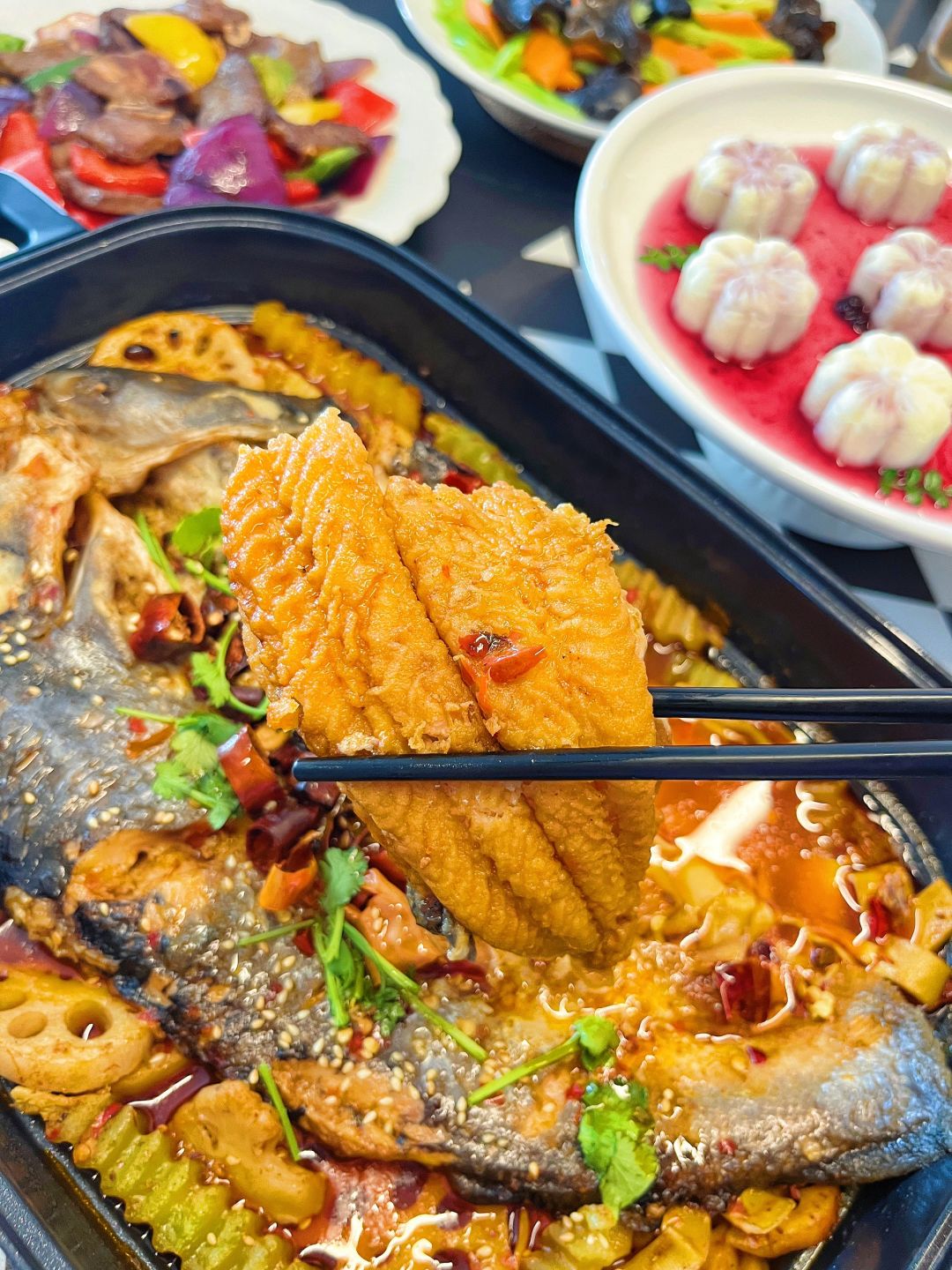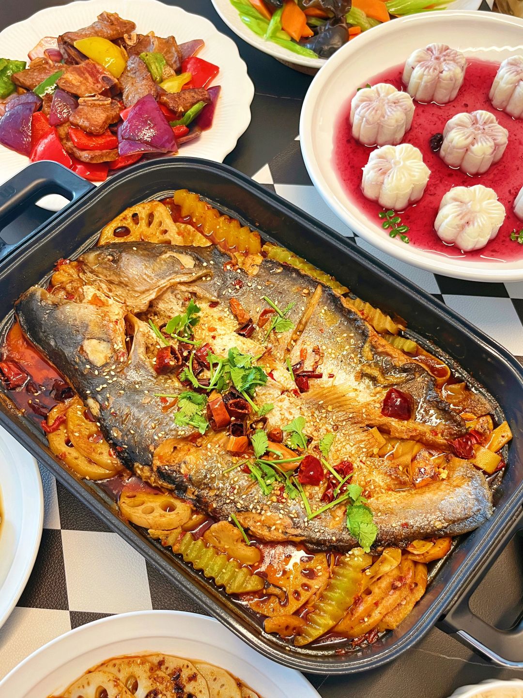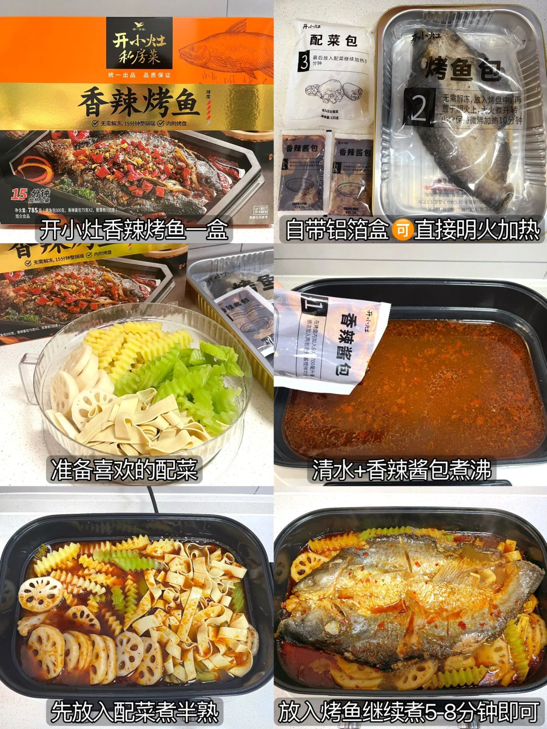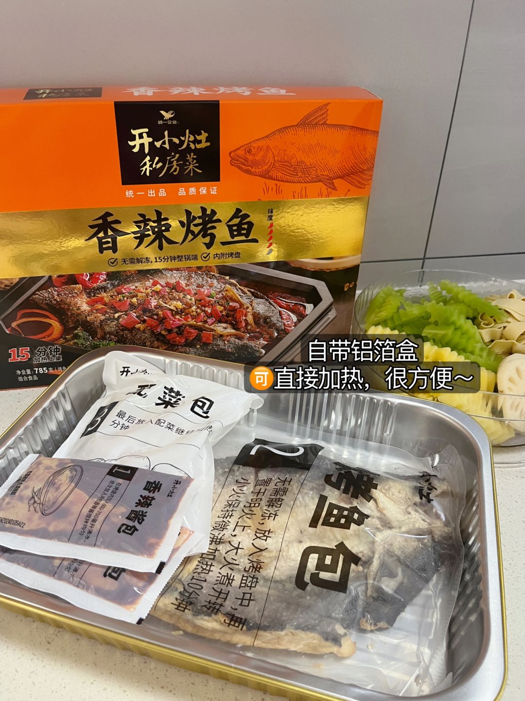 今天的香辣烤鱼🐟真的好好吃呀,15分钟搞定~大块鱼肉外焦里嫩很下饭,人多吃饭可以再加点喜欢的配菜莴笋、豆皮、藕片、土豆条之类的(自带的配菜是菜花,藕片)味道真的比外面店里的还要好吃😋