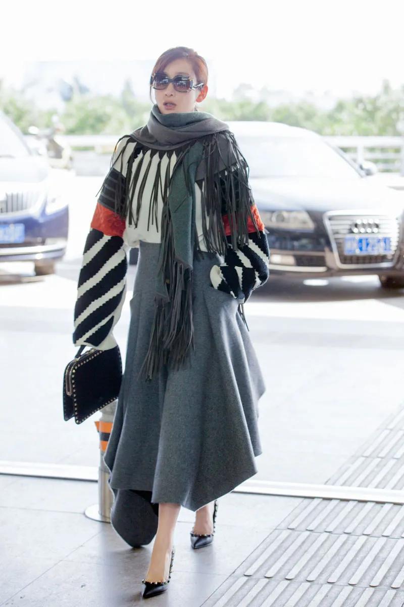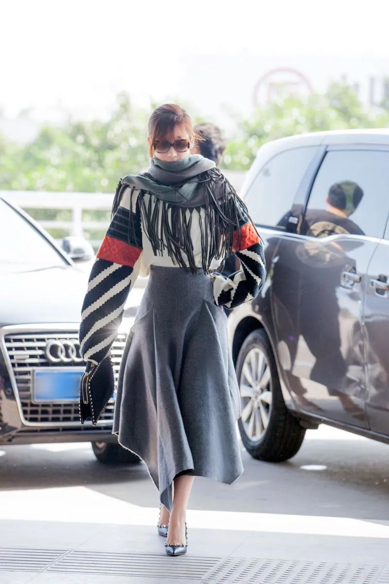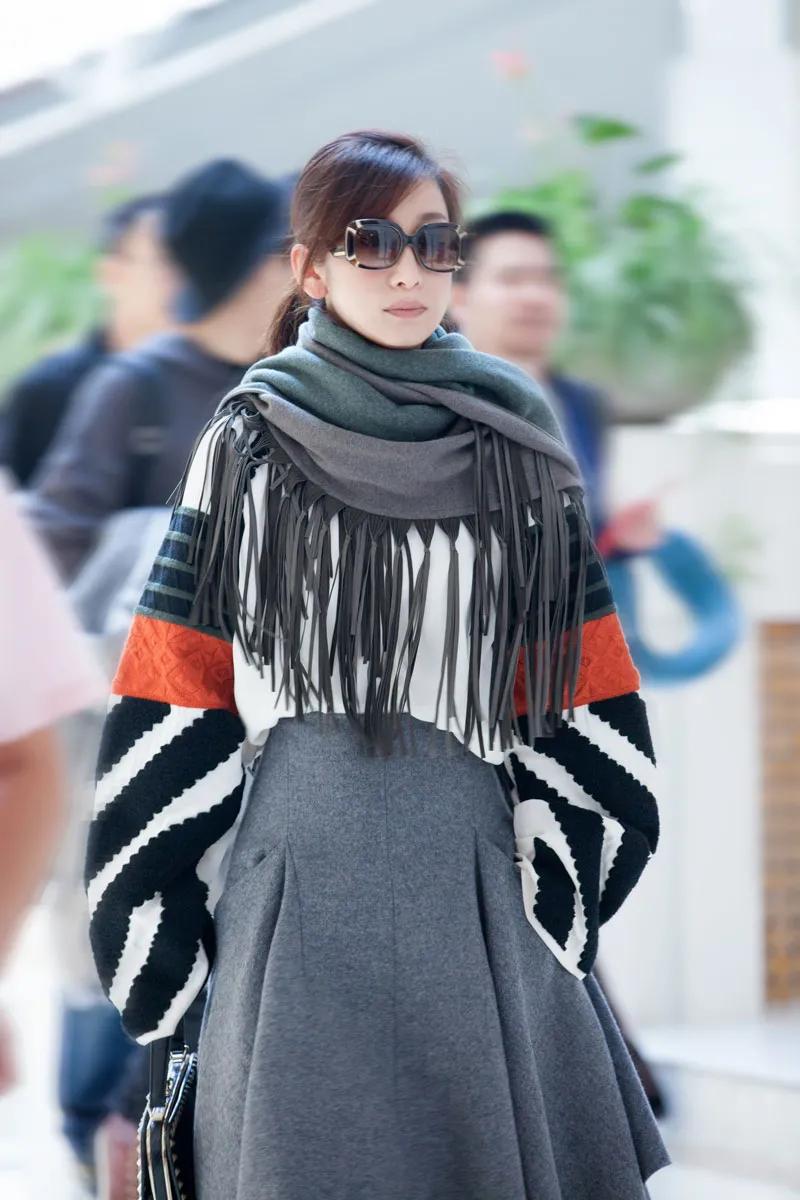 秦海璐这也太洋气了,整体搭配得宜,显年轻又有气质,上身的白色拼接上衣,袖口采用喇叭袖毛衣服饰,几种不同颜色互相碰撞,营造出不一样的美感,墨镜加持显得气场十足,随意搭配的同色系围巾,既保暖又时髦。#万能生活指南#