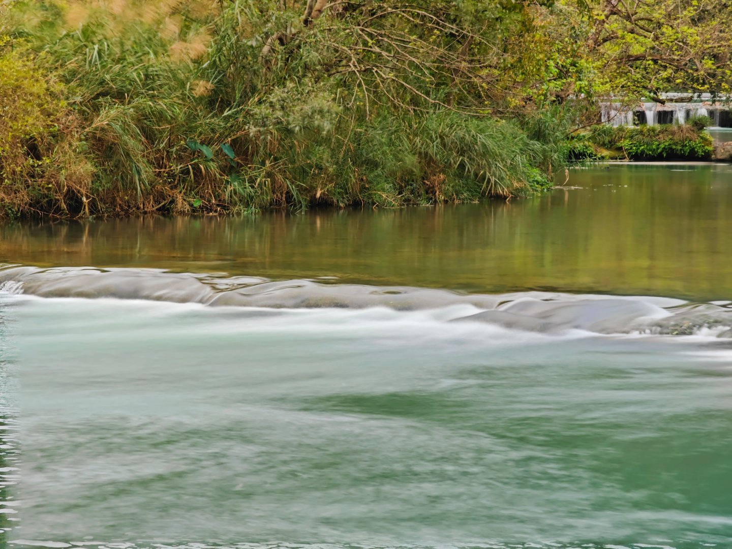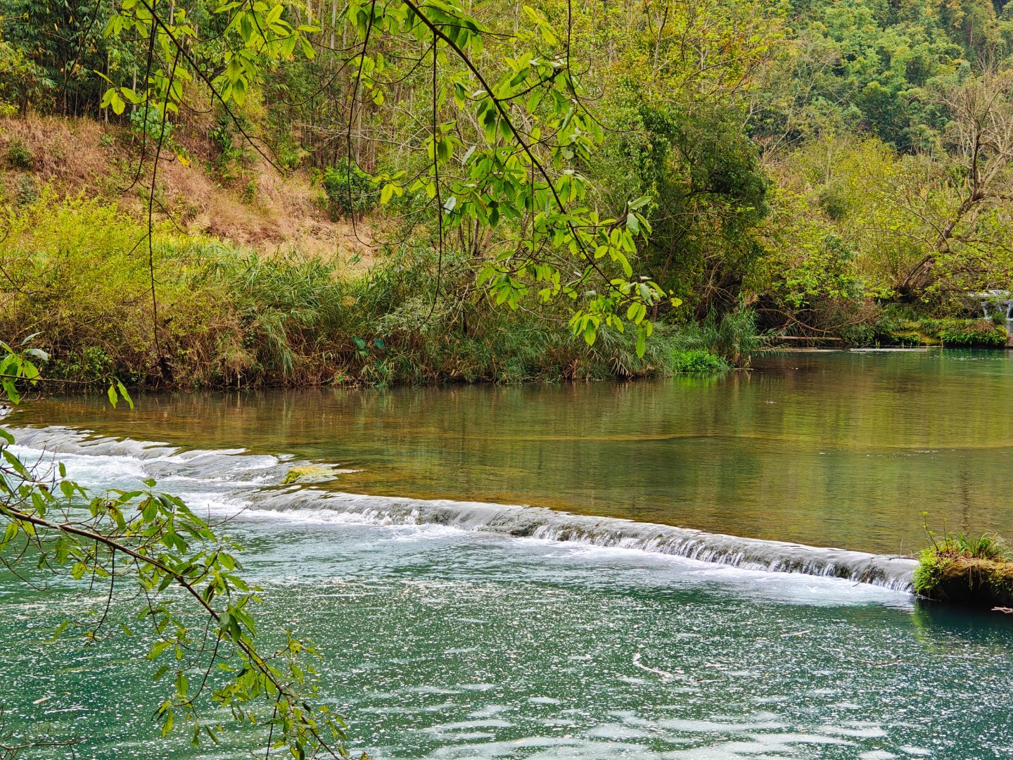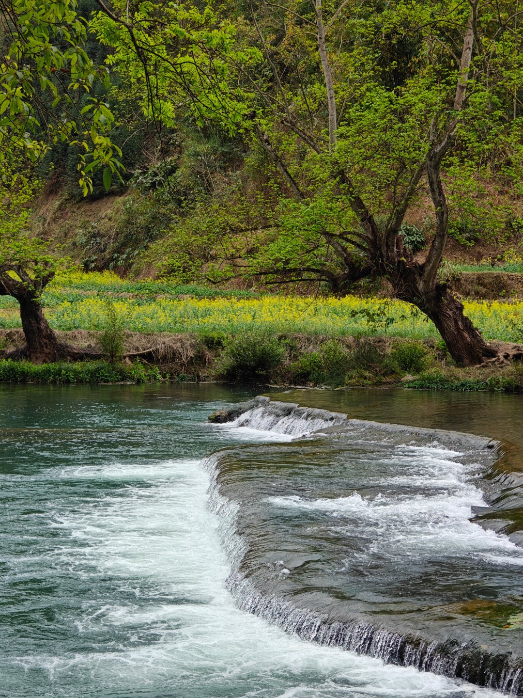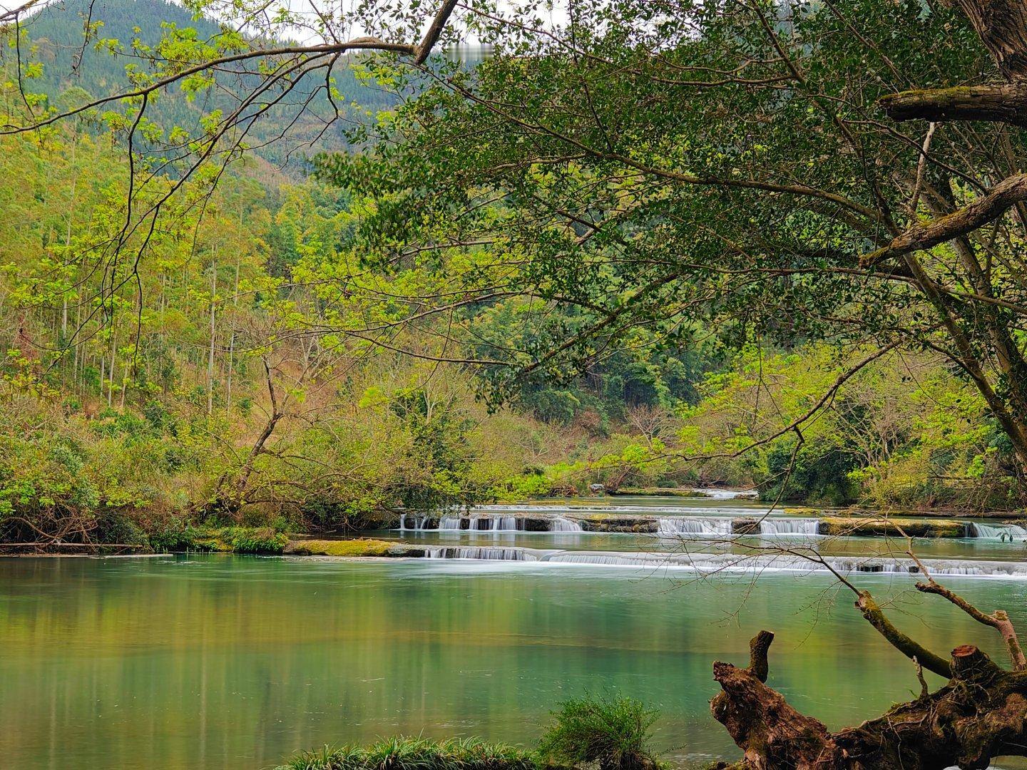 #探秘罗平多依河# 多依河位于中国云南省曲靖市罗平县,是一条蜿蜒曲折的河流,以其秀美的自然风光和独特的喀斯特地貌而闻名。多依河全长约10公里,河水清澈见底,两岸绿树成荫,石峰林立。河流沿途形成了许多天然景观,如溶洞、瀑布和峡谷等。